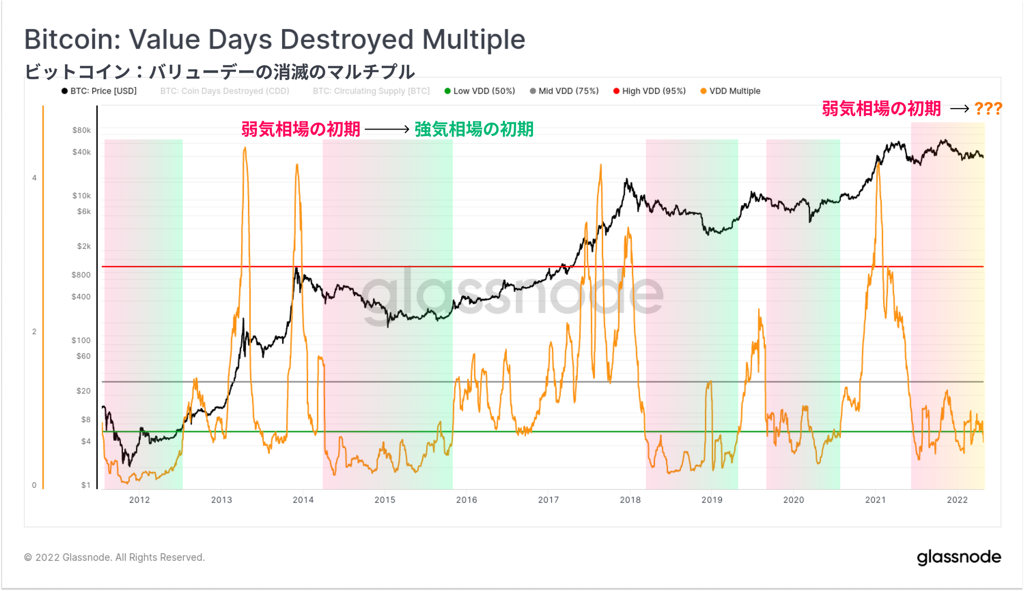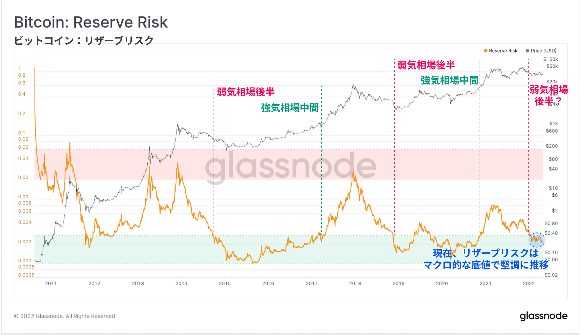 マクロ経済の力と伝統的な市場との相関がビットコインを引き下げるかどうかはまだ分からないが、多くの基本的な指標は、過小評価となる注目すべきポイントにある、または近づいている。テクニカル分析(メイヤーマルチプル)からコインの寿命分析(リザーブリスク、VDDマルチプル)、さらには基本的なネットワークの健全性と利用率(RVT比率)まで、多くのマクロ的指標において建設的な流れが見られる。