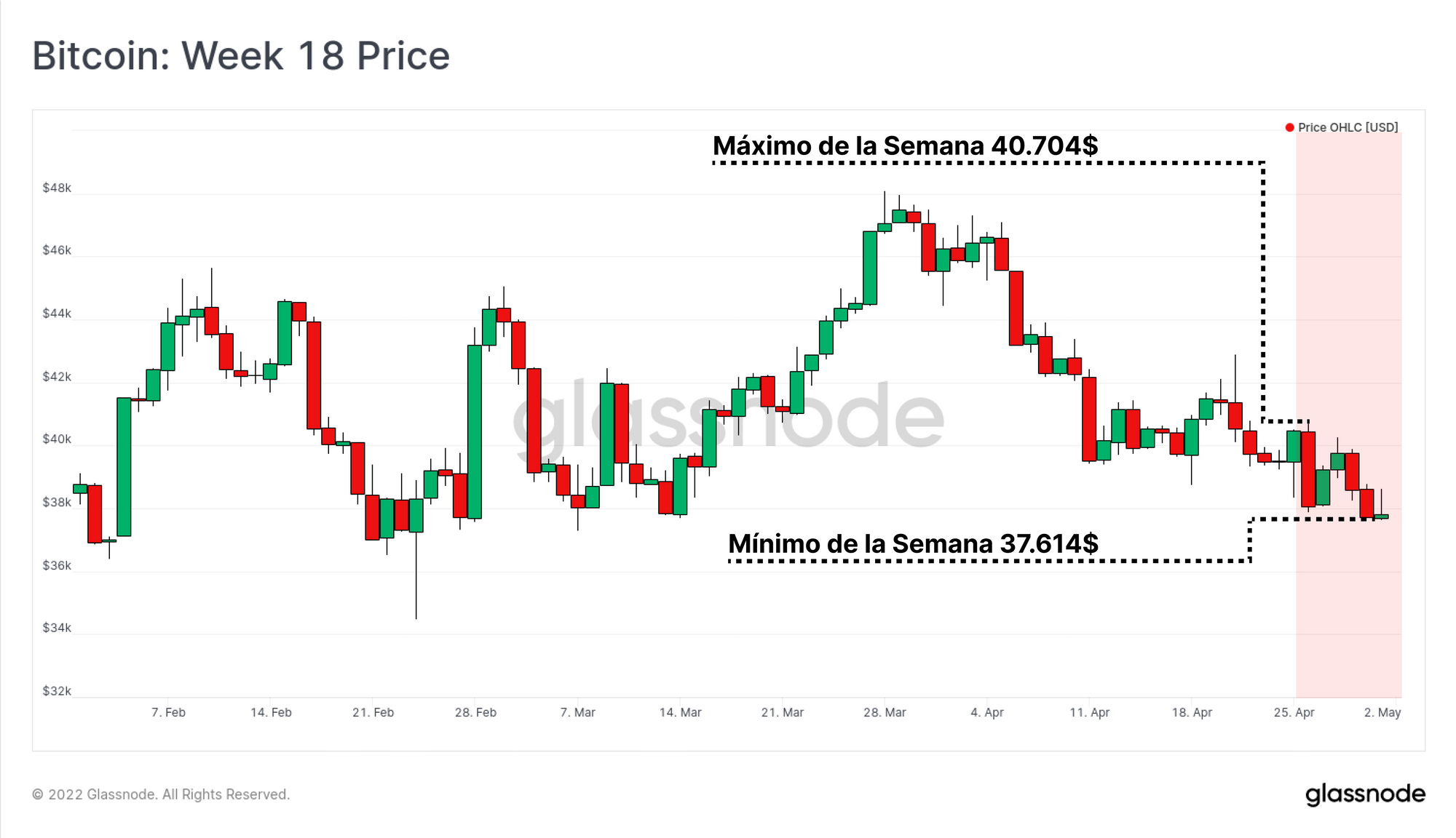 A pesar de haber caído algo esta semana, los mercados de Bitcoin en realidad se han conseguido mantener fuertes y robustos, relativamente hablando. Mientras que los índices del S&P500 y el NASDAQ alcanzaron nuevos mínimos locales en su persistente tendencia bajista, el precio de Bitcoin se ha mantenido dentro de un estrecho rango, y sigue sin dar muestras de la suficiente inercia hacia ninguna de las dos direcciones. Dicho esto, la correlación de Bitcoin con los mercados tradicionales sigue estando cerca de los máximos históricos, y esa percepción de Bitcoin como activo de alto riesgo sigue suponiendo una seria traba.