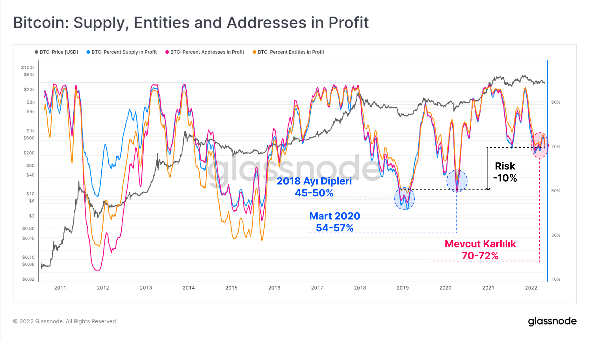 Bitcoin yatırımcılarının çok büyük bir kısmı, kârsız pozisyonlar tutmanın uçurumunu inceliyor ve çok tartışılan bir kapitülasyon olayı için potansiyel bir anlaşma yaratıyor. Bununla birlikte, eş zamanlı olarak, çok sayıda uzun vadeli makro gösterge, tarihi düşük değerleme seviyelerinin devrede olduğuna işaret ediyor ve son aşama ayı piyasası tabanları dışında nadiren görülen değerlere ulaşıyor. Bu bültende, kısa vadeli fiyat hareketinin itici güçleri ile Bitcoin için orta ve uzun vadeli temel eğilimler arasındaki bu dikkate değer farklılığı keşfedeceğiz.