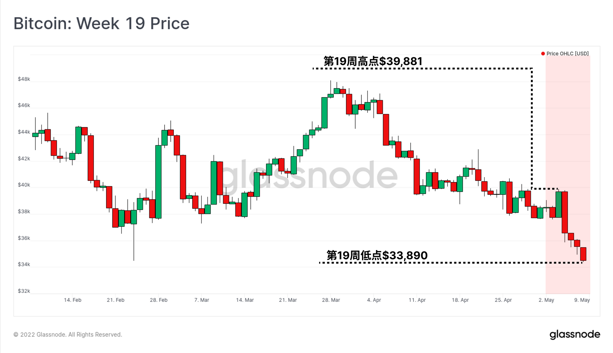 本周比特币市场经历了高波动性和进一步的下行,市场对美联储加息0.5%的决定做出了反应。市场最初在周三对这一消息反应良好,比特币反弹至39,881美元的周高点。然而,积极的势头却很短命,投资者周四大量抛售,比特币价格下跌-13.8%,本周收于33,890美元。