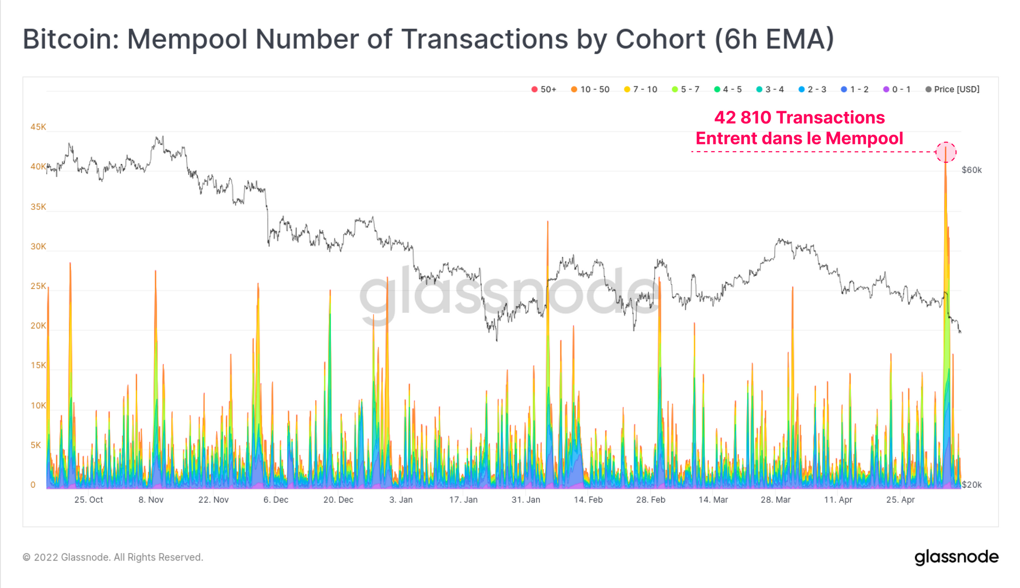 Alors que le marché chutait cette semaine, nous avons vu un afflux de 42,8k transactions entrer dans le mempool de Bitcoin. Il s'agit de l'afflux le plus important de transactions depuis la mi-octobre 2021 (date à laquelle nous avons commencé à suivre l'activité du mempool).