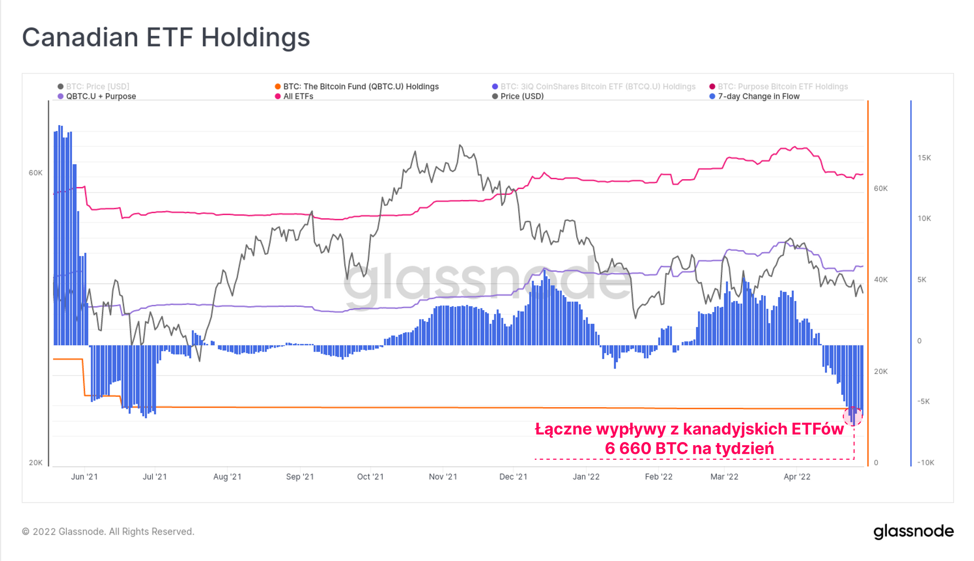 Na podstawie 7-dniowej zmiany, z funduszy tych wypływało ponad 6,66 tys. BTC tygodniowo, co w głównej mierze odpowiada ostatnim słabym notowaniom.