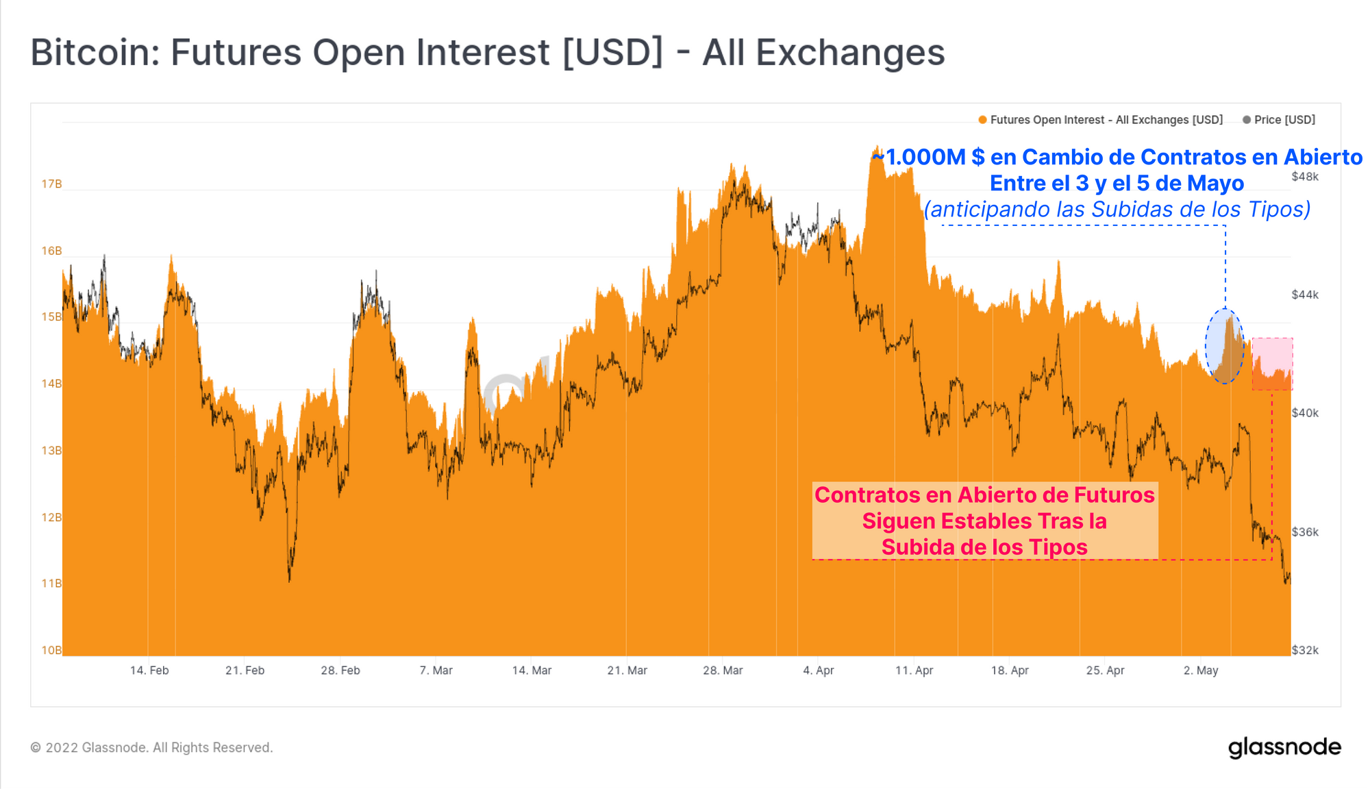 No obstante, la mayor parte de este apalancamiento se cerró rápidamente, y no fue hasta el desplome del jueves que los contratos en abierto se pudieron estabilizar, manteniéndose cerca de los 14.300M $.