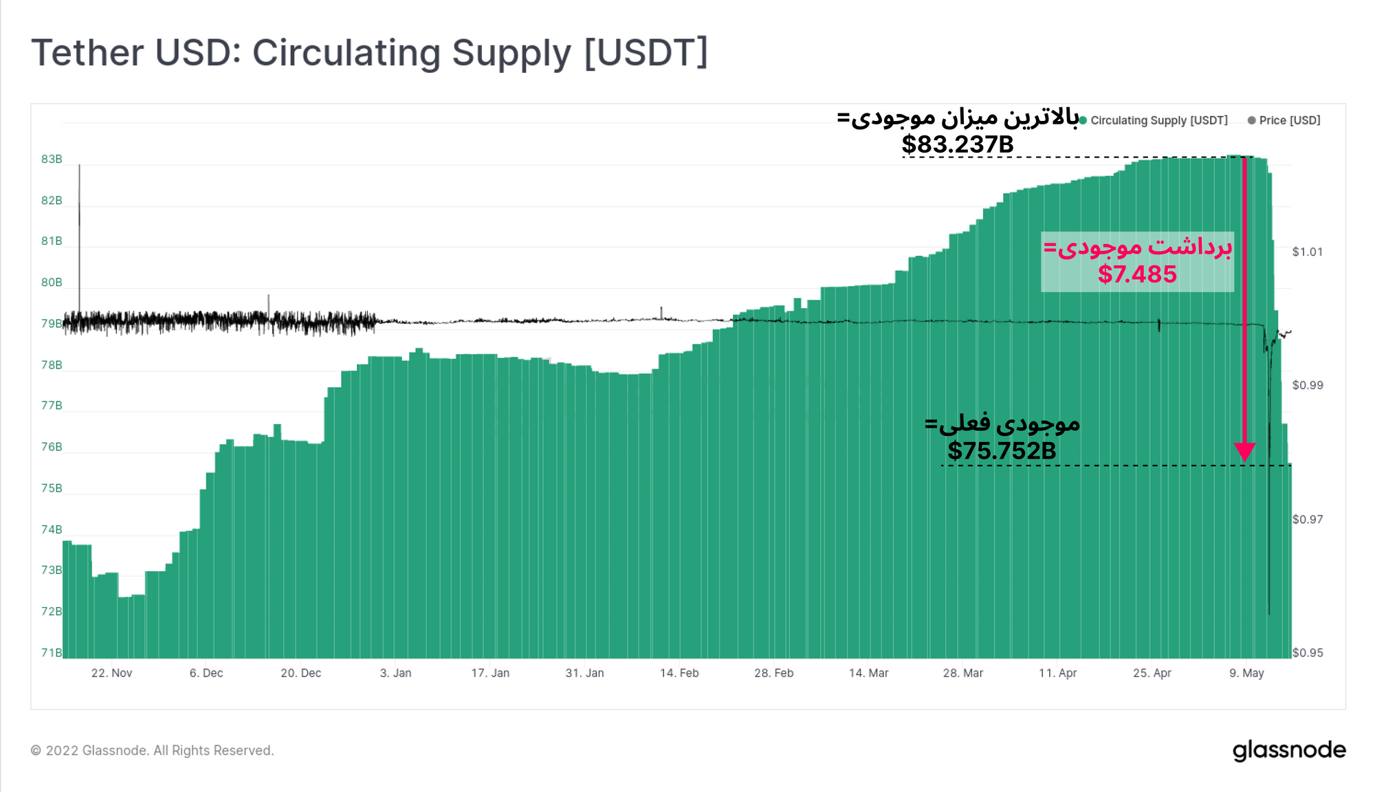 دوازدهم می، در اوج نگرانی و بیثباتی استیبل کوینها، Tether اعلام کرد که کاربران میتوانند USDTهای خود را برداشت کنند و فعلاً دو میلیارد دلار حال برداشت شدن است.