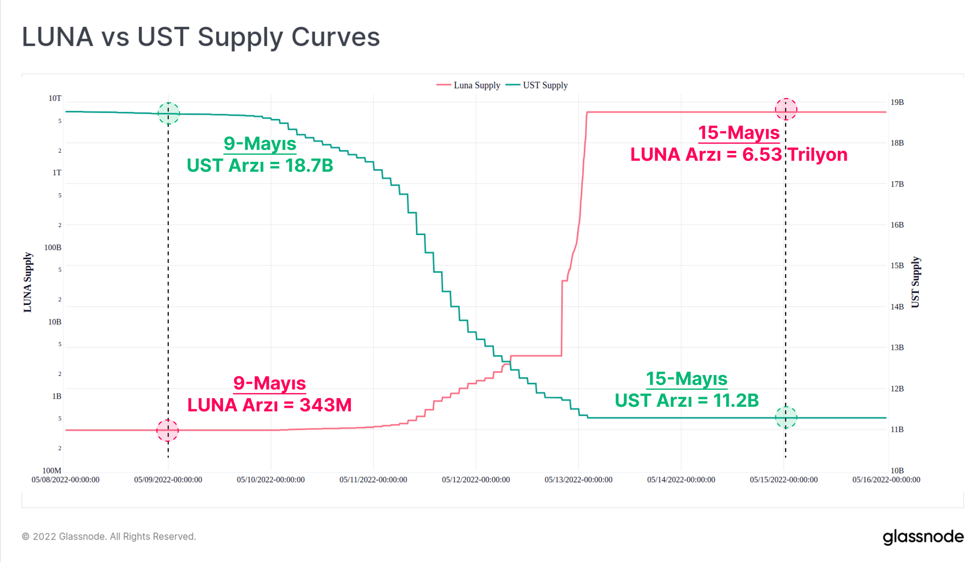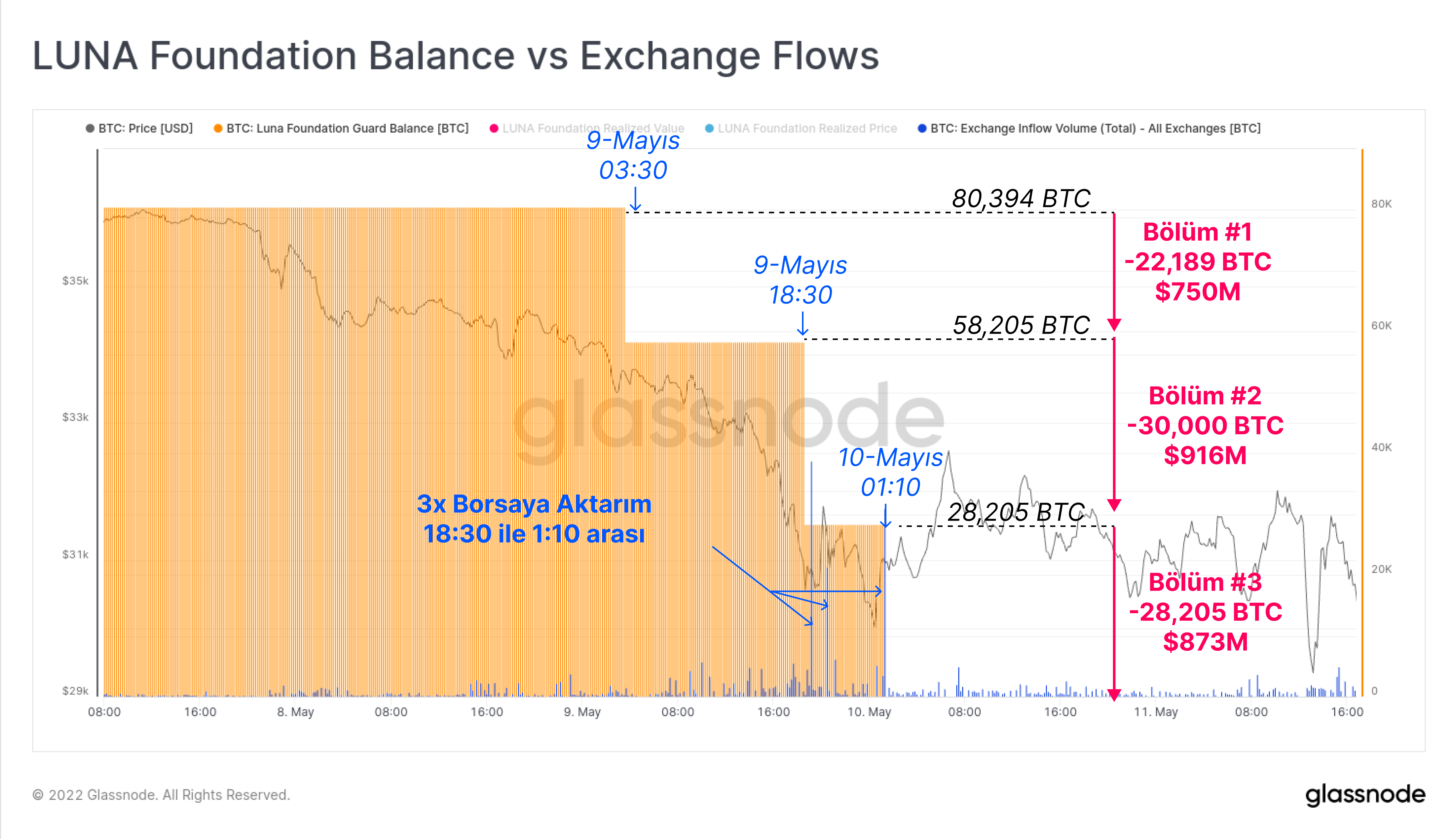 - UST ve LUNA pazar dinamikleri, LUNA ve UST tedariklerine ne olduğu ve LFG Bitcoin rezervlerinin nasıl dağıtıldığı.