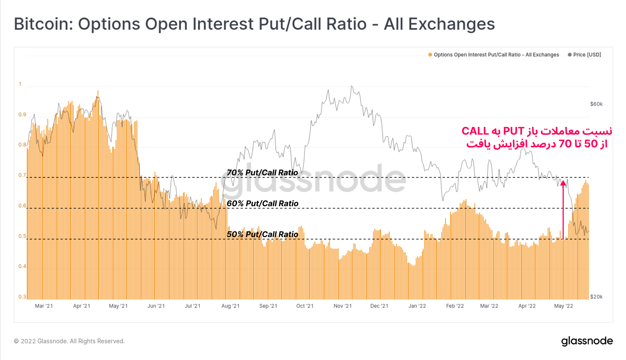 زمانی که افراد دیدگاه نزولی به بازار داشته باشندPut option یا همان اختیار فروش معامله را خرید میکنند و زمانی که دیدگاه صعودی داشته باشندCall option یا همان اختیار خرید معامله را خرید میکنند. بازار خرسی در چنین شرایطی ایجاب میکند که نسبت معاملات put بیشتر از معاملاتcall باشد. نسبت این معاملات در دو هفته اخیر از ۵۰ درصد به بالای ۷۰ درصد رسیده است؛ زیرا افراد به دنبال محافظت از پوزیشنهای خود در برابر کاهش قیمت بیشتر هستند.