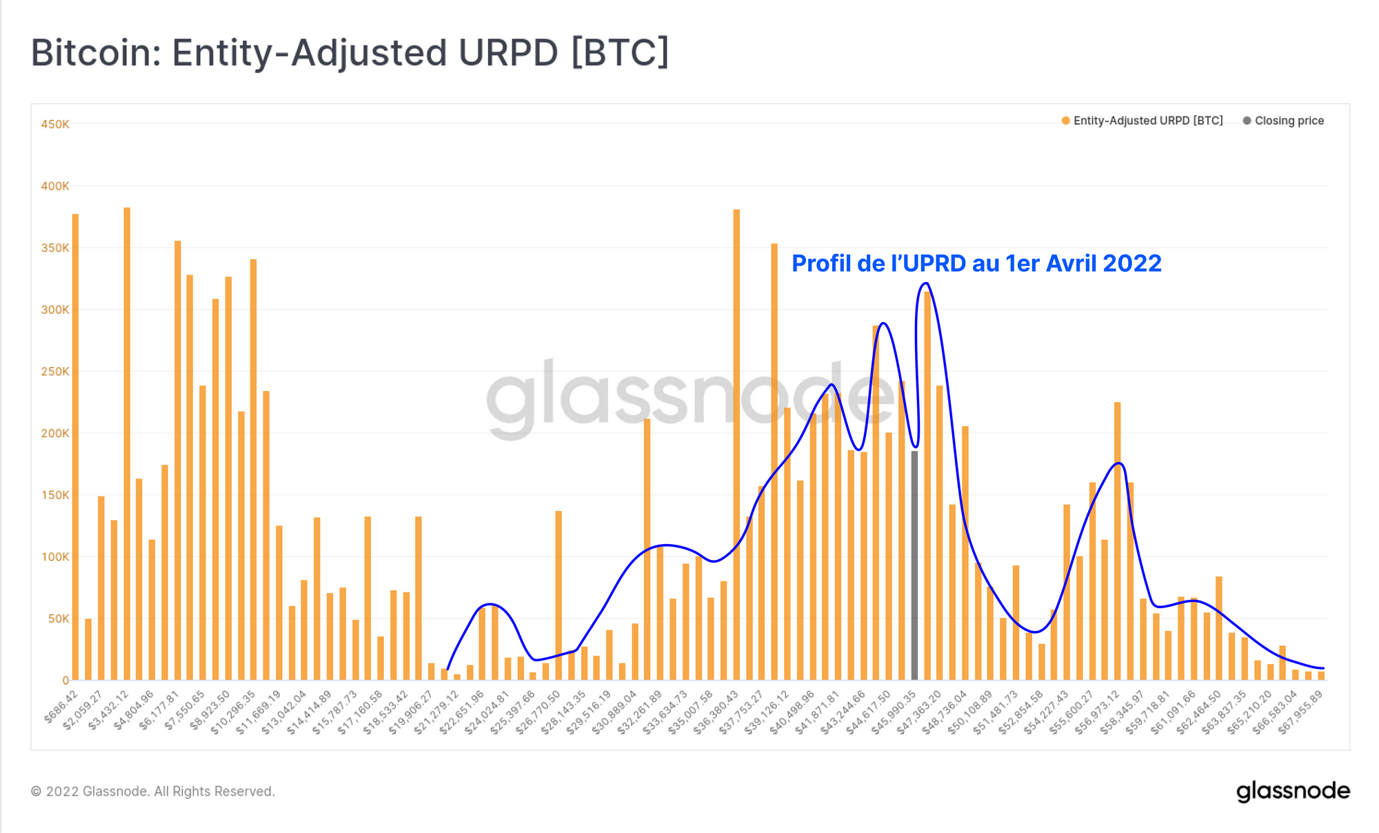 Si nous examinons la métrique URPD au 1er avril 2022, avant la vente de LUNA, nous pouvons établir le profil de distribution des pièces en nous concentrant sur le cycle 2021-22.