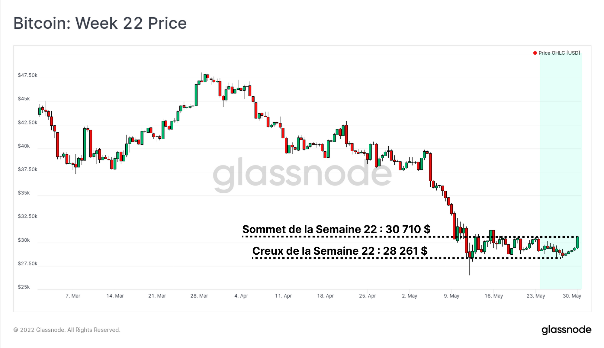 Le prix du bitcoin a continué à consolider cette semaine après les premiers signes d'un découplage potentiel entre les marchés d'actifs numériques et les marchés d'actions traditionnel dont la direction laisse à désirer. L'indice S&P500 a progressé de 7,4 % par rapport à son niveau le plus bas de la semaine et le NASDAQ de 9,6 %.