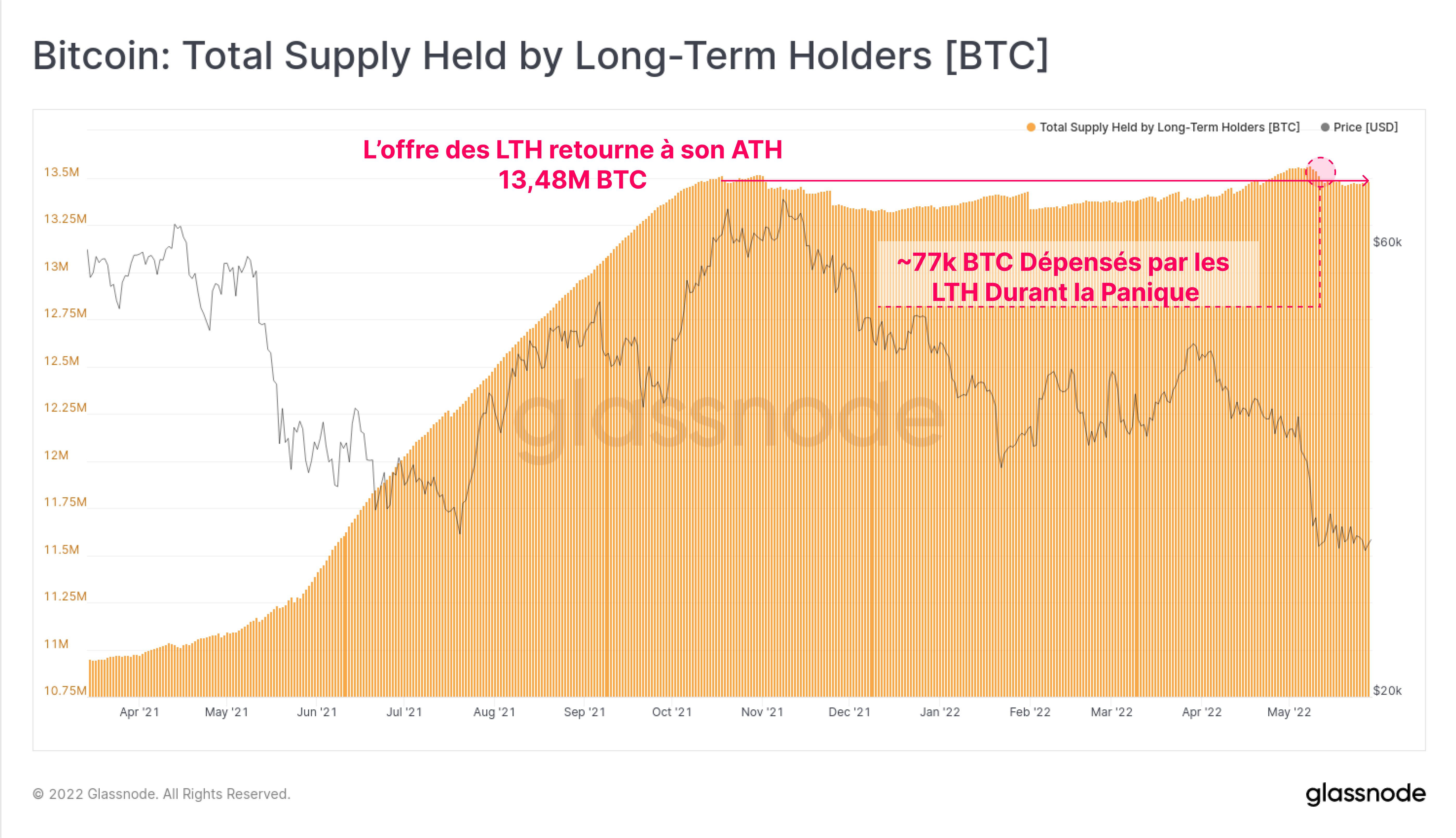 Si l'on rappelle que le seuil des détenteurs à long terme se situe à la fin décembre, il n'est pas surprenant que l'offre totale de LTH ait atteint un plateau ces derniers temps. Au cours des derniers mois, le seuil des détenteurs à long terme a suivi la tendance à la baisse qui s'est manifestée de novembre à janvier.