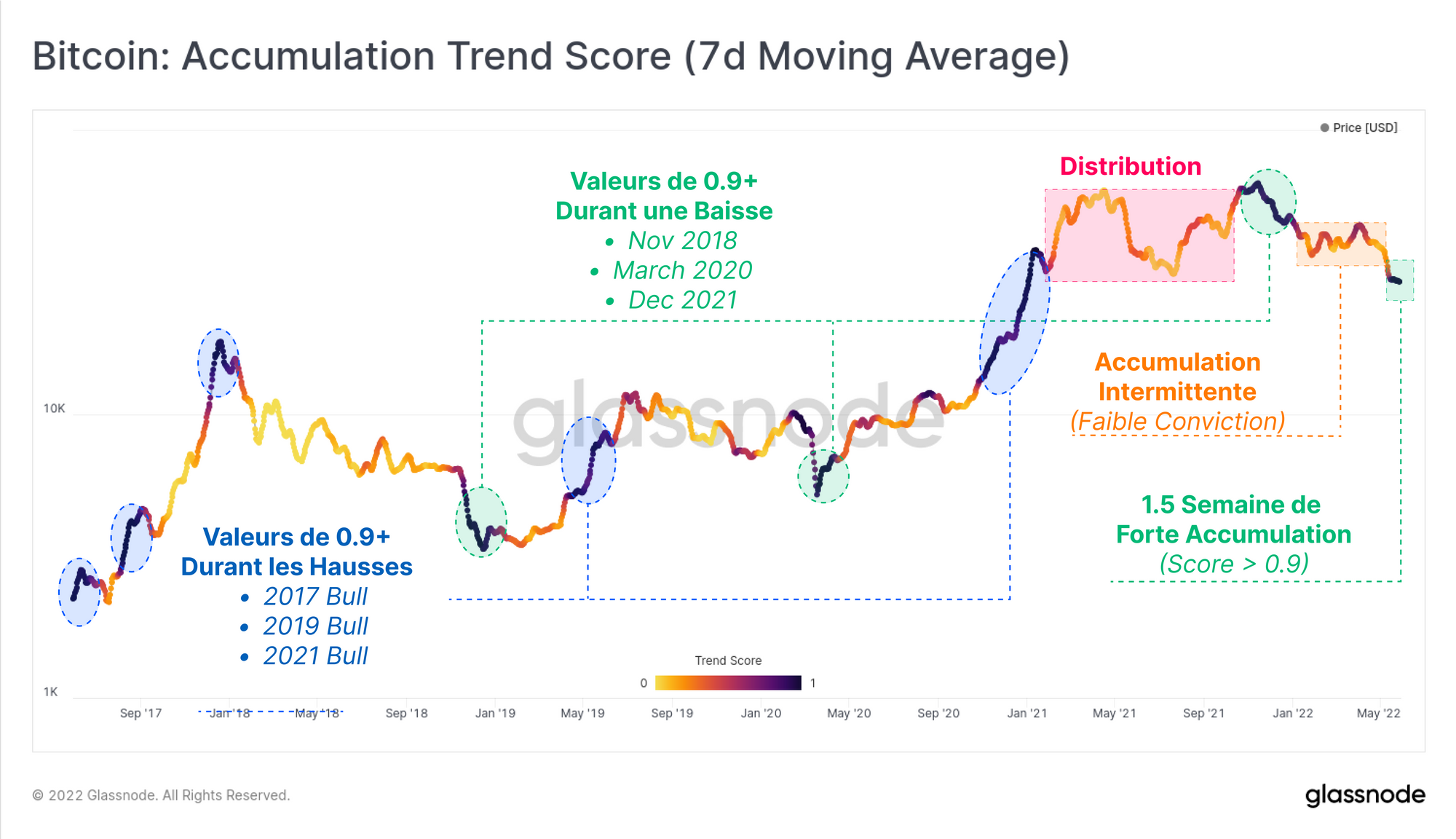 Il s'agit d'une rupture nette par rapport aux scores intermittents obtenus pendant la période de consolidation de janvier-avril (orange), que l'on peut raisonnablement qualifier d'accumulation de conviction relativement faible.
