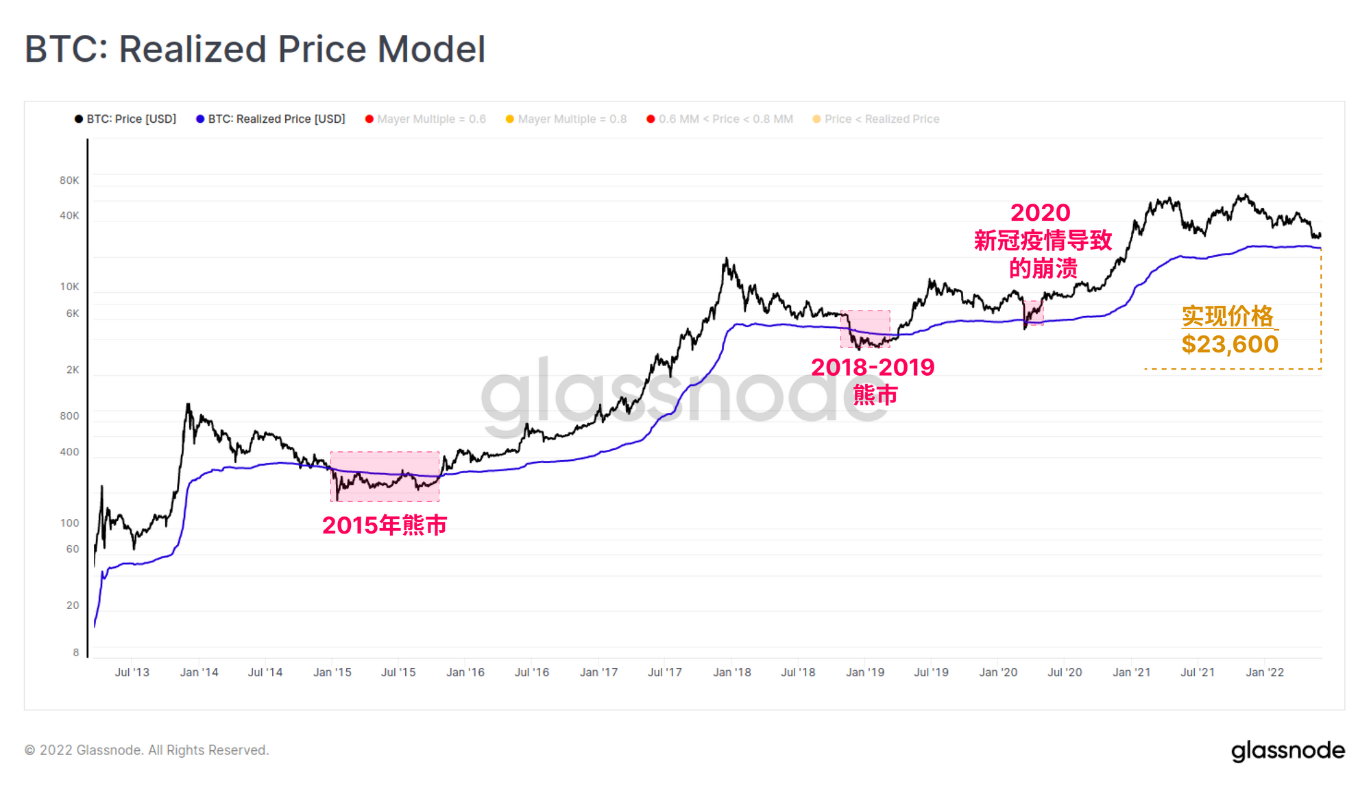 在过去的四个熊市中,市场价格在两个显著阶段进入这个价值范围: