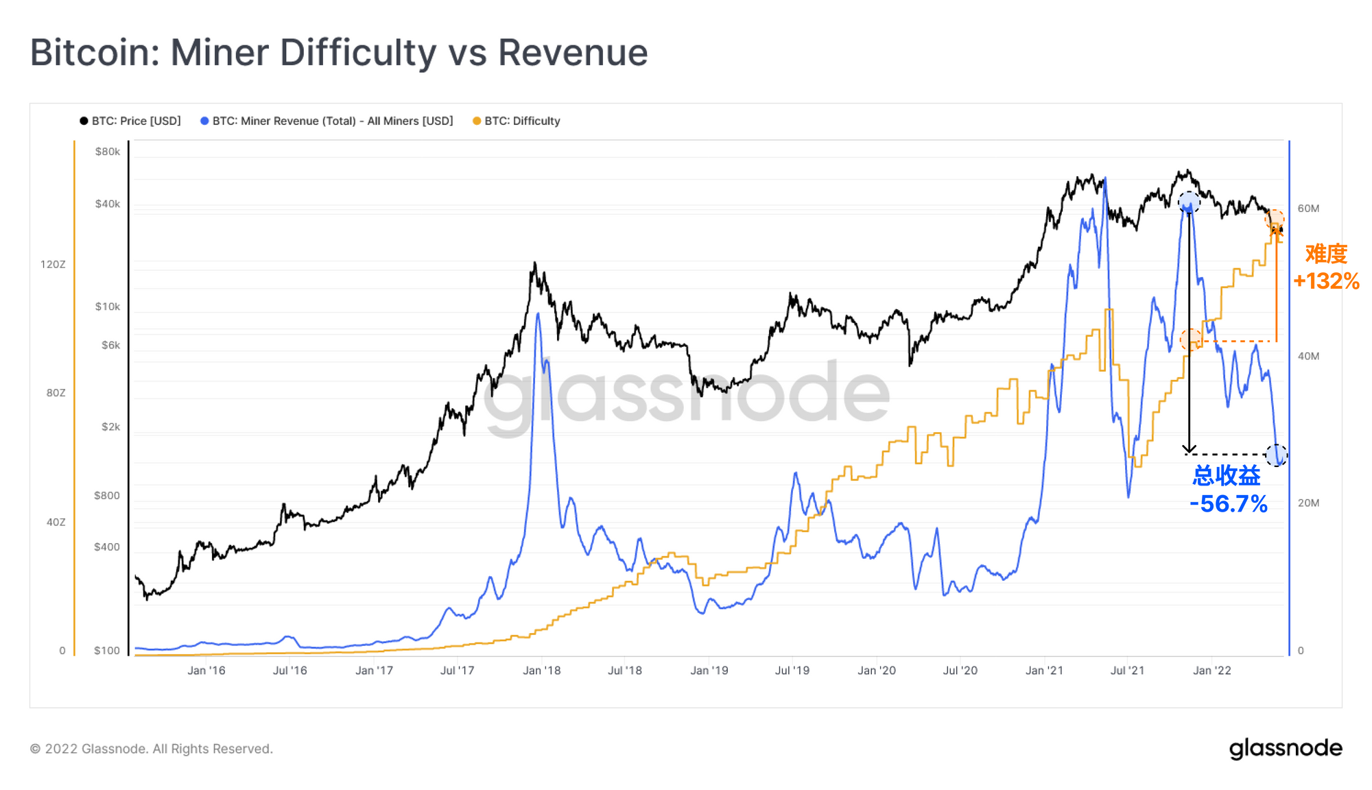 在确定了当前熊市的严重性和探讨了长期持有者的相应行为后,我们现在将评估矿工对收入下降的反应。