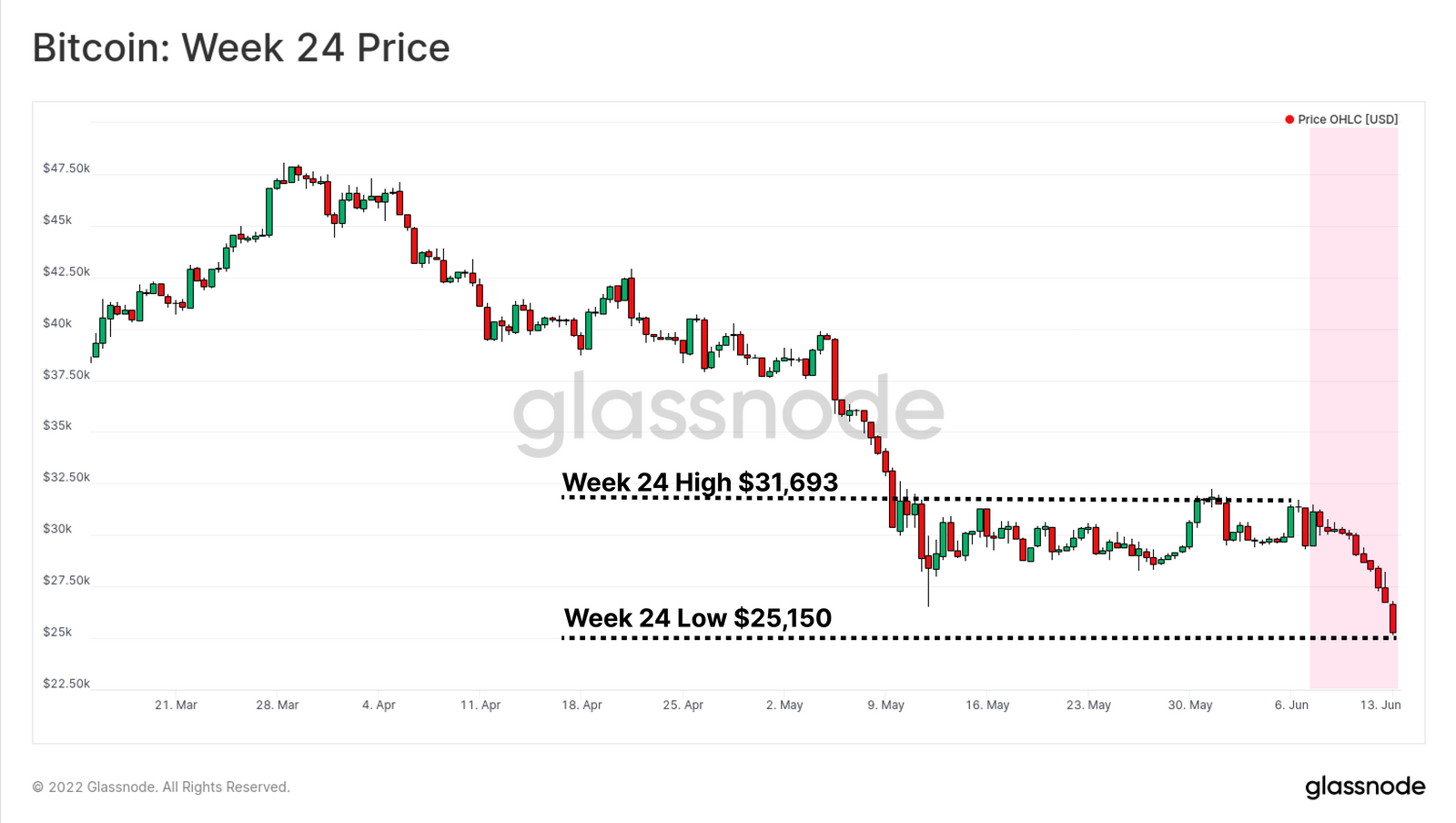 Το Bitcoin και τα ψηφιακά περιουσιακά στοιχεία βίωσαν μια ακόμη χαοτική εβδομάδα καθοδικής δράσης των τιμών, χάνοντας το άνοιγμα των 31.693 δολαρίων και πραγματοποιώντας συναλλαγές στο νέο πολυετές χαμηλό των 25.150 δολαρίων. Οι μακροοικονομικοί αντίξοοι άνεμοι παραμένουν ένας οδηγός μεγάλης κλίμακας, με την τελευταία εκτύπωση του ΔΤΚ (CPI, Consumer Price Index) των ΗΠΑ στο 8,6% να είναι υψηλότερη των προσδοκιών και μια άλλη αντιστροφή της καμπύλης απόδοσης των 2ετών-10ετών Ομολόγων του Αμερικανικού Δημοσίου να συμβαίνει τις πρώτες ώρες της Δευτέρας. Αυτό αντιμετωπίστηκε με ένα μεγάλο ράλι στο DXY (US Dollar Index), καθώς το Bitcoin κλείνει με το 10ο κόκκινο κερί του σε 11 εβδομάδες.