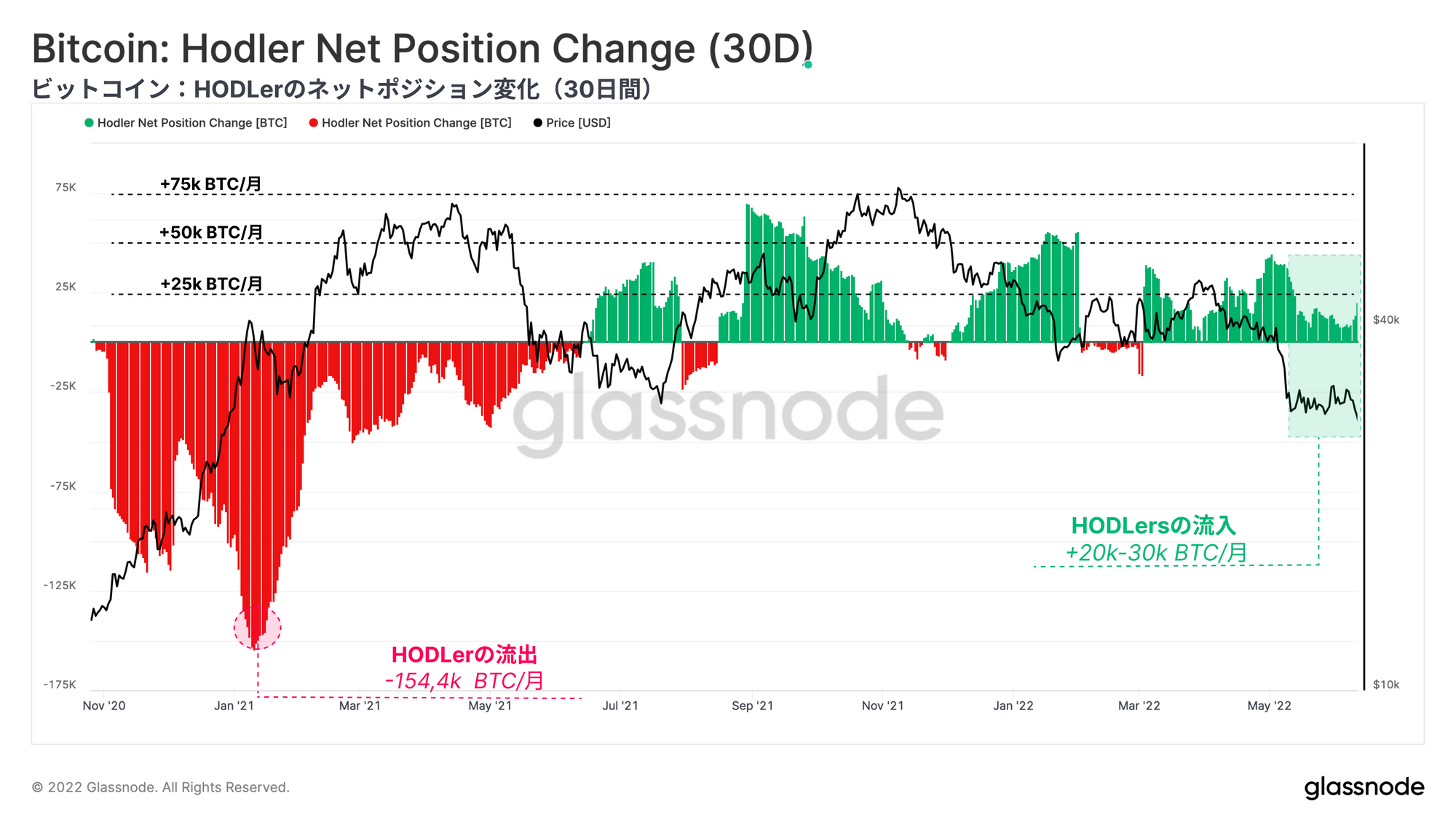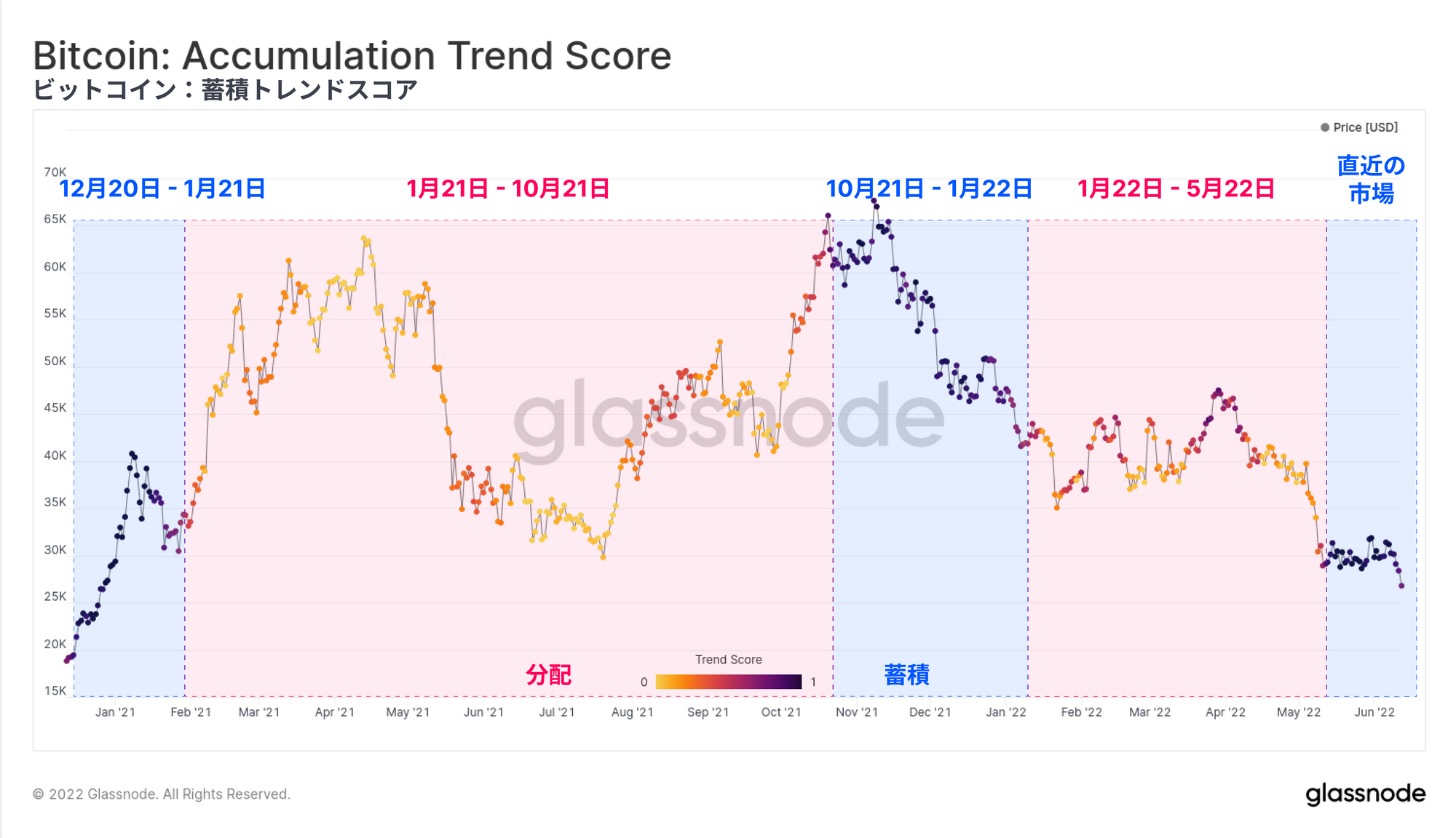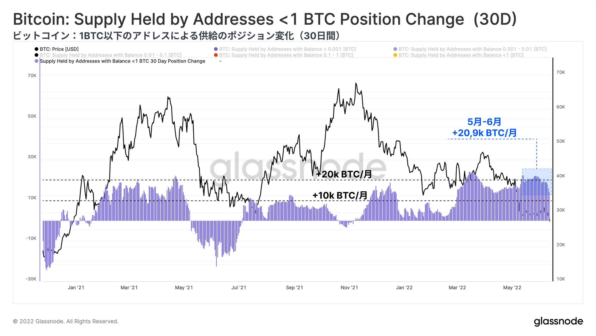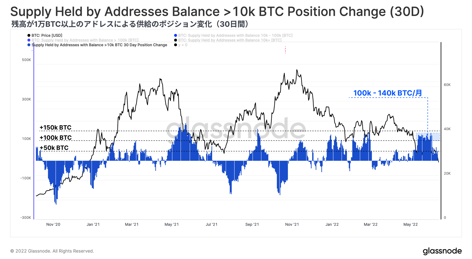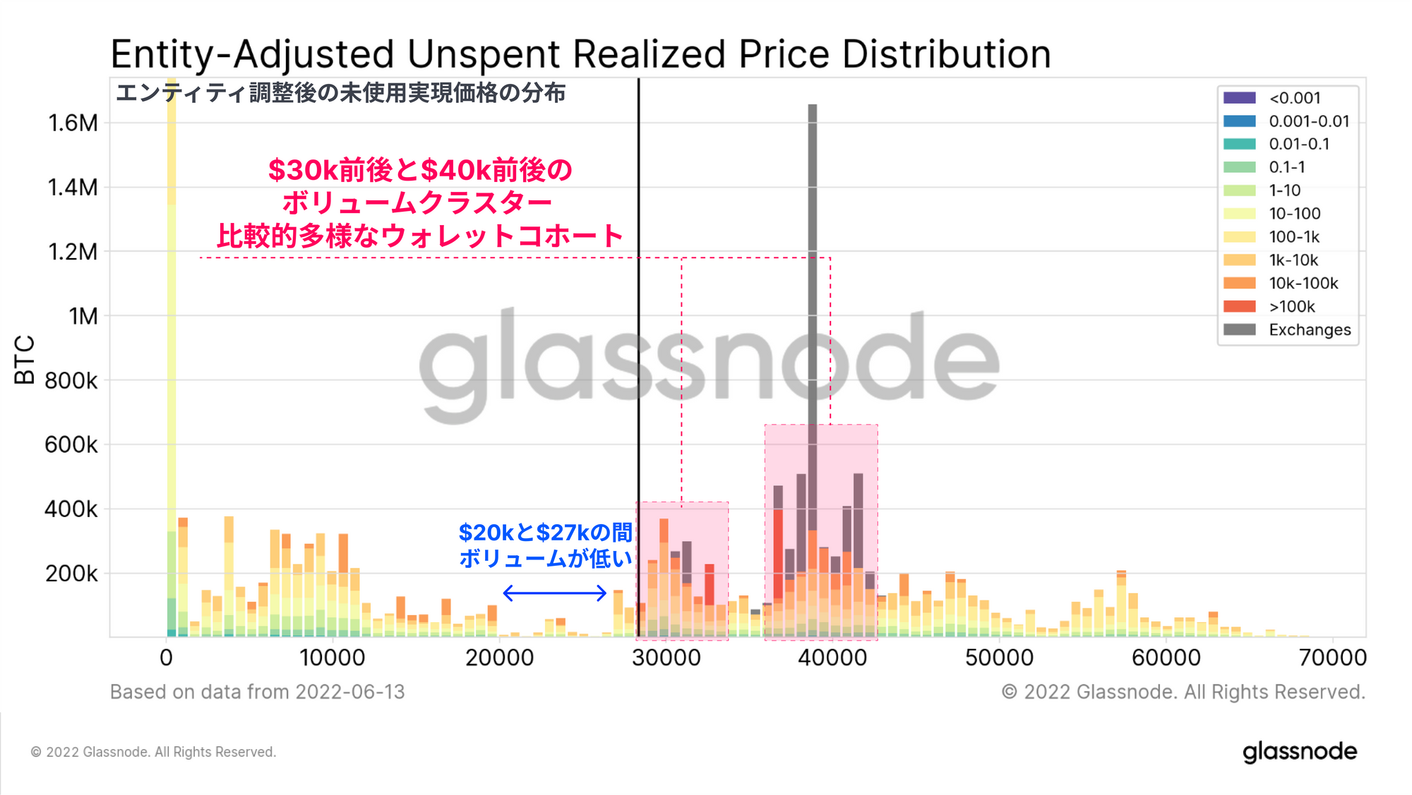 ビットコインのネットワーク利用率は低迷を続け、RVTなどのマクロ指標は未知の弱気領域に突入している。エビ(< 1BTC)、クジラ(> 10k BTC)を問わず蓄積は続いているが、価格のサポートラインが確立されるには程遠い。多くのマクロ評価指標が売られすぎの状態を示し続けているにもかかわらず、ビットコインは依然として伝統的市場と相関性があり、価格は反応し打撃を受けている。