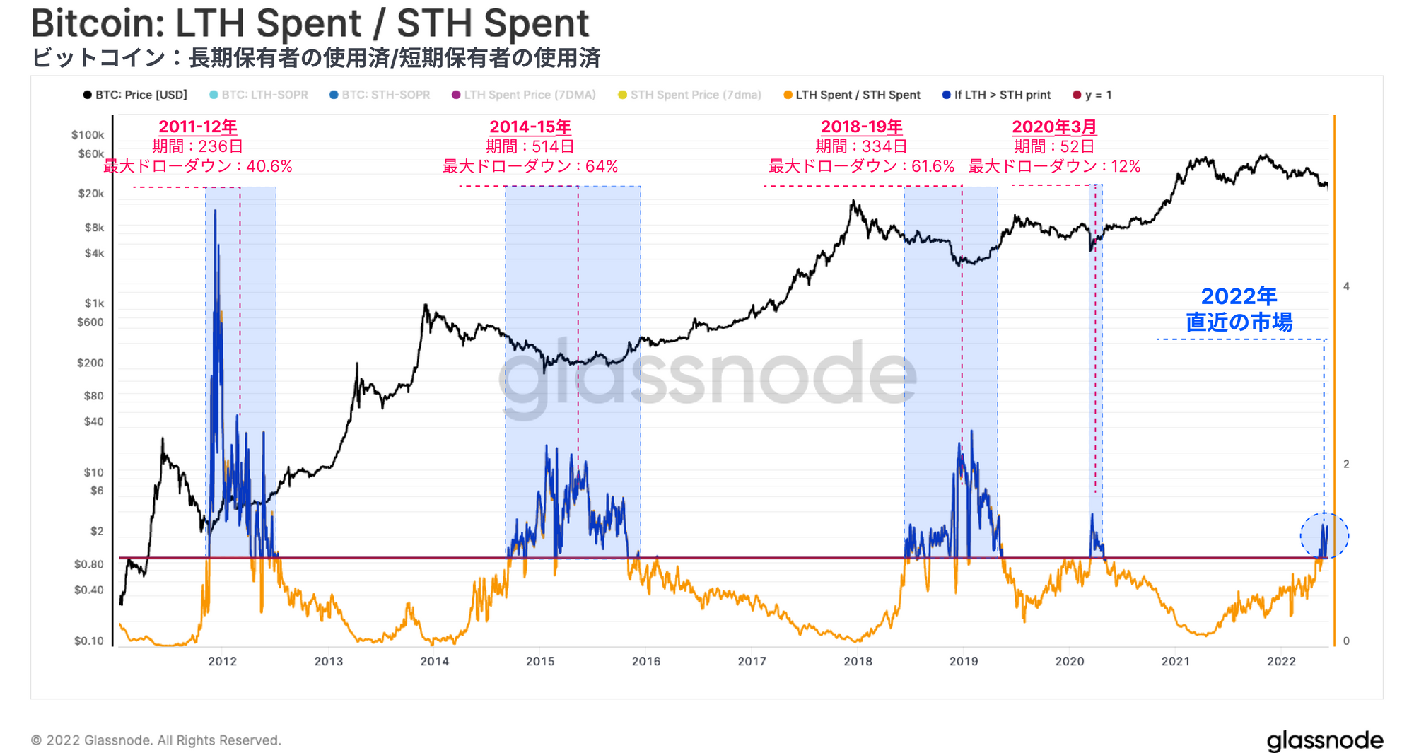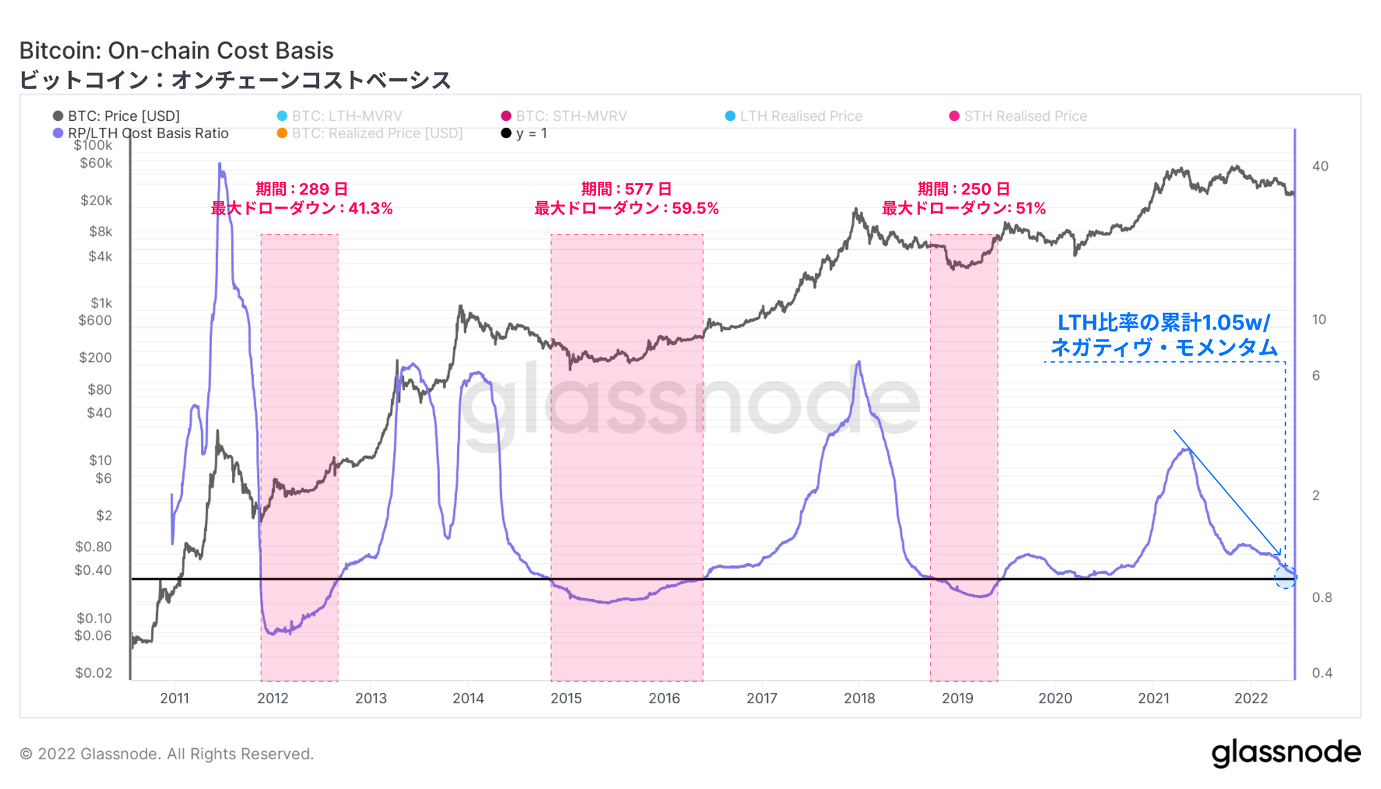 今回は、現在の弱気相場が、過去の弱気相場における最も深く暗い段階と一致する局面を迎えていることを探る。市場は平均してコスト・ベーシスをほとんど上回っておらず、長期保有者ですら保有ベースから除去されつつある。