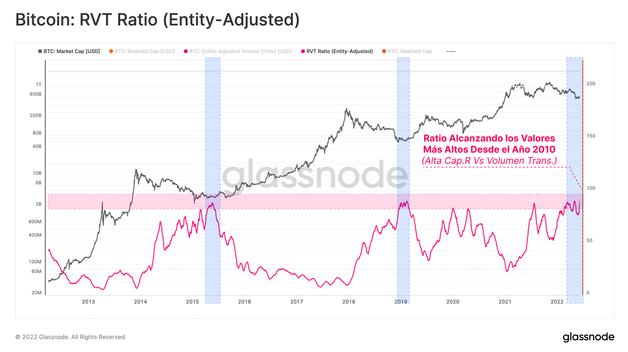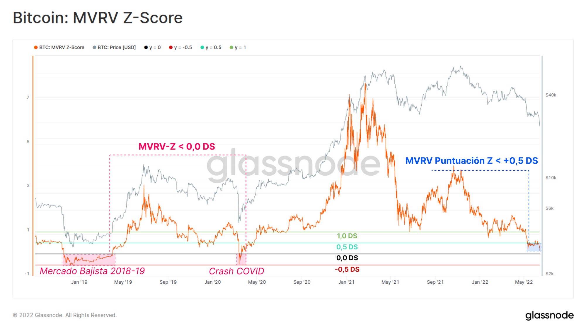 La utilidad del network de Bitcoin sigue de capa caída, y algunas macro métricas se adentran en territorio bajista hasta ahora desconocido. A pesar de la incesante acumulación que están llevando a cabo por igual los Camarones (< 1BTC) y las Ballenas (> 10.000BTC), estamos muy lejos de haber establecido un soporte firme en el precio. Aunque muchas métricas de valorización de Bitcoin siguen dando señales sobrevendidas, Bitcoin se mantiene firmemente correlacionado con los mercados bursátiles tradicionales, y como tal esto provoca que los precios sufran.