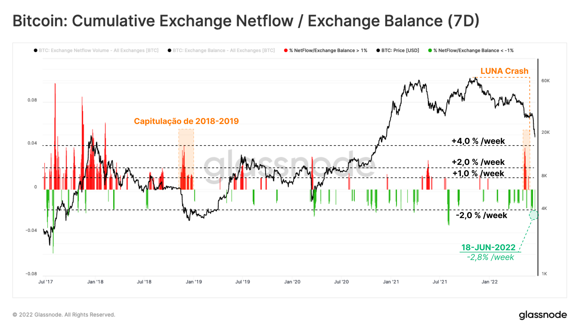 O mercado de Bitcoin sofreu um grande evento de desalavancagem esta semana, tanto nos mercados DeFi on-chain quanto fora da rede, já que corretoras, credores e fundos hedge se tornaram insolventes, ilíquidos ou foram liquidados. O mercado caiu abaixo dos US $ 20 mil ATH em 18 de junho, atingindo uma mínima verdadeiramente notável de US $ 17.708. Os preços, no entanto, recuperaram o nível de US$ 20 mil no domingo.