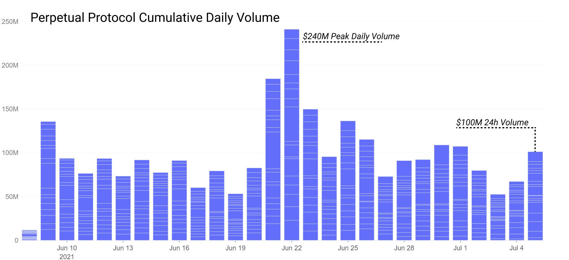 - Perpetual Protocol announces their V2 on Arbitrum. The token popped on the rumor and news, sitting now at $9 from $4 lows in late June. Their decentralized perpetual contracts remain a hot corner of DeFi.