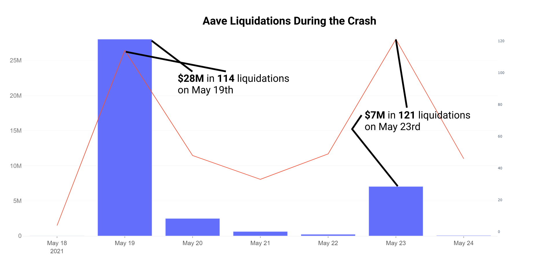 - For a short period on the 19th, utilization (borrow/collateral) pushed past 80% on Aave as price volatility sent health factors lower and interest rates up to >14%.
