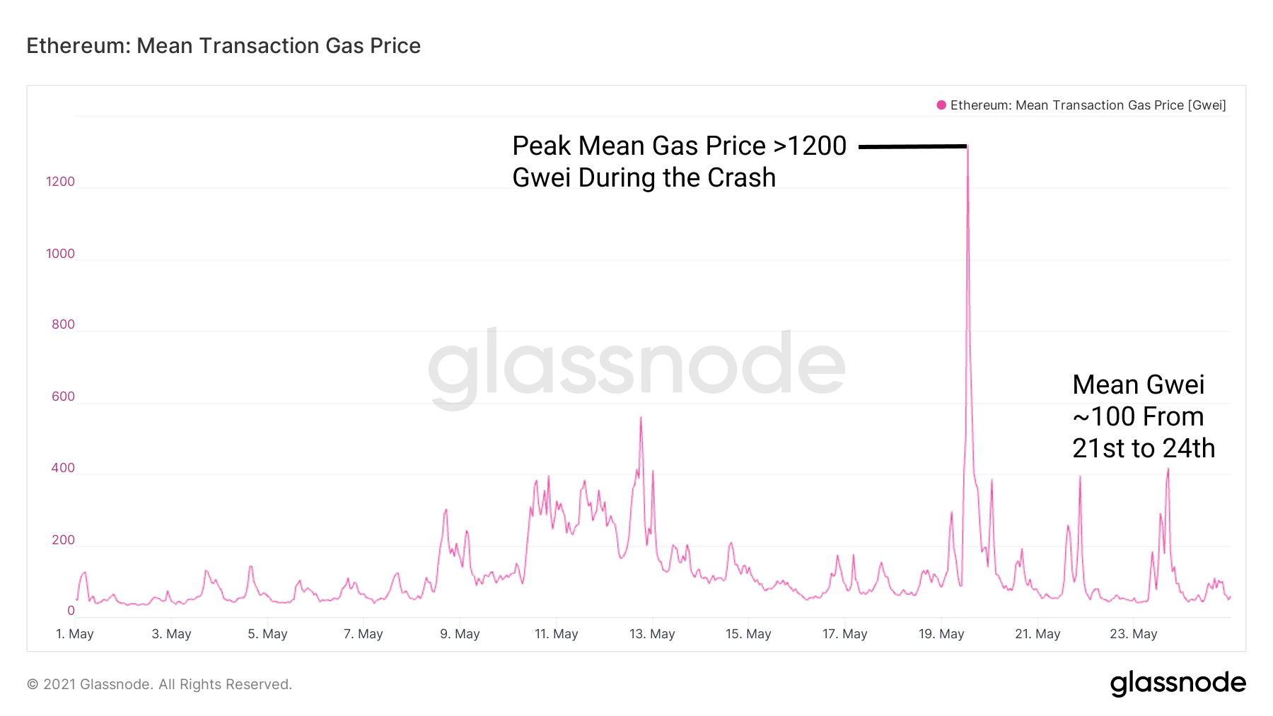 A few days after the crash, gas prices have since fallen considerably. Gas consumption from stable transfers has fallen by >60%, Uniswap gas consumption has fallen about 50% from the peak, and opportunities for arbitrage have mostly returned to normal levels since the crash. Peak mean Gwei of 1200 put cost to transact in excess of $500/swap throughout the crash. At <75 mean Gwei, smaller traders can now rebalance as they see fit.
