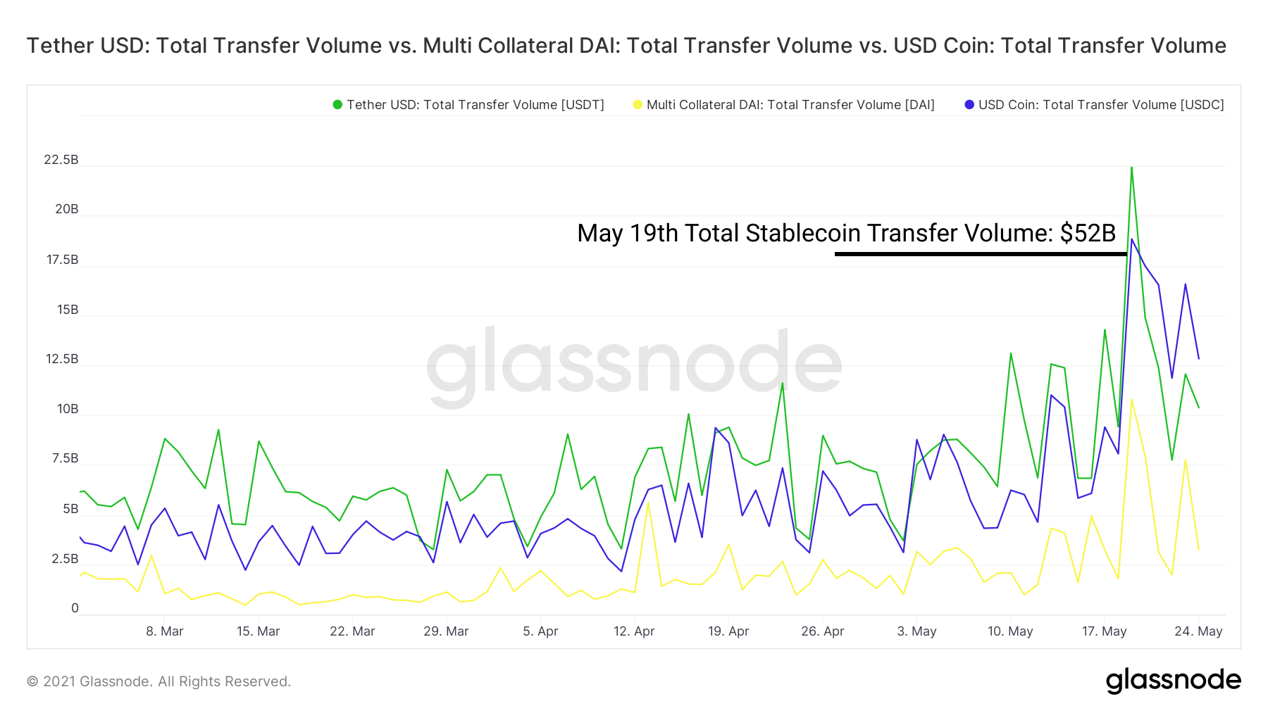 All in all, stablecoins performed as intended and pegs were held across the space. Stablecoin transfer volume on-chain reached $52B, record volume of stablecoin transfers.