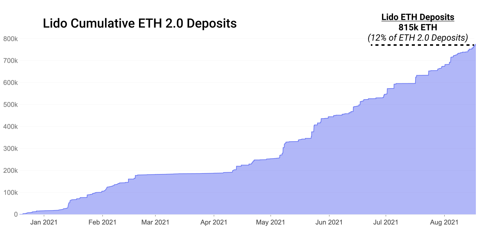 Lido deposits have continued to rocket upward, hitting 12% of total staked supply this week.
