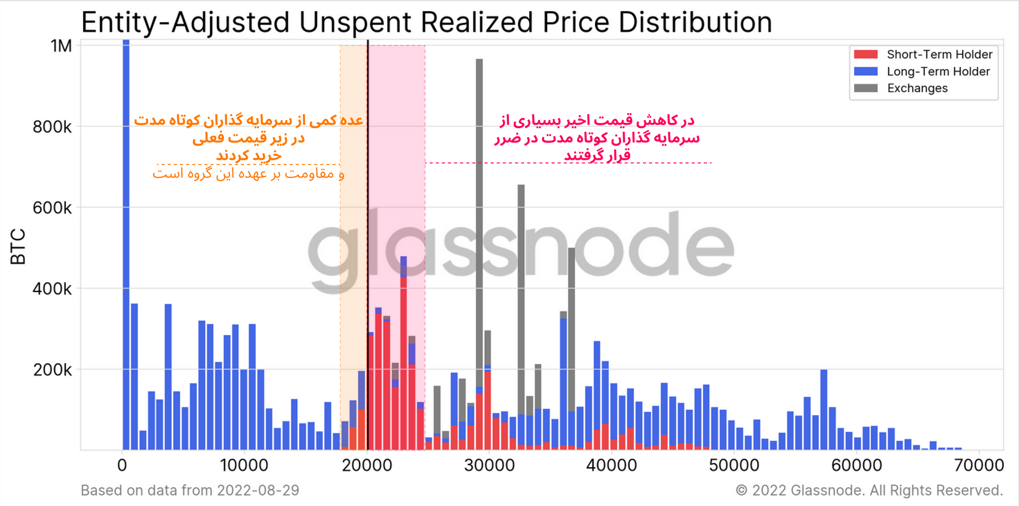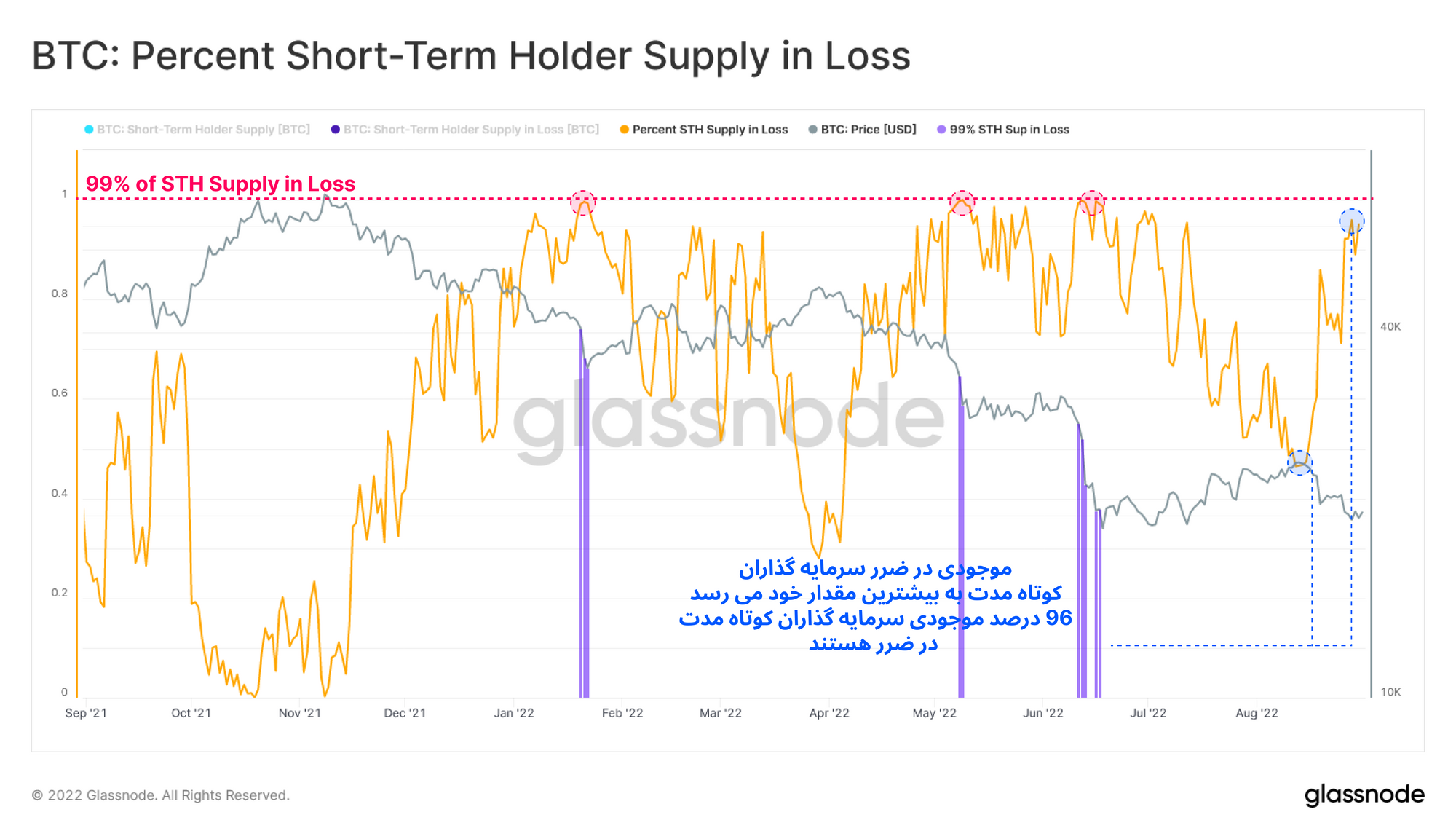 در حال حاضر بیتکوینهای کوتاهمدت بسیاری در قیمتهای اخیر خریداری شدهاند اما در کاهش قیمتی اخیر اغلب بیتکوینهای کوتاهمدت در حالت ضرر قرار گرفتند و فشار مالی بسیاری بر دوش آنهاست.