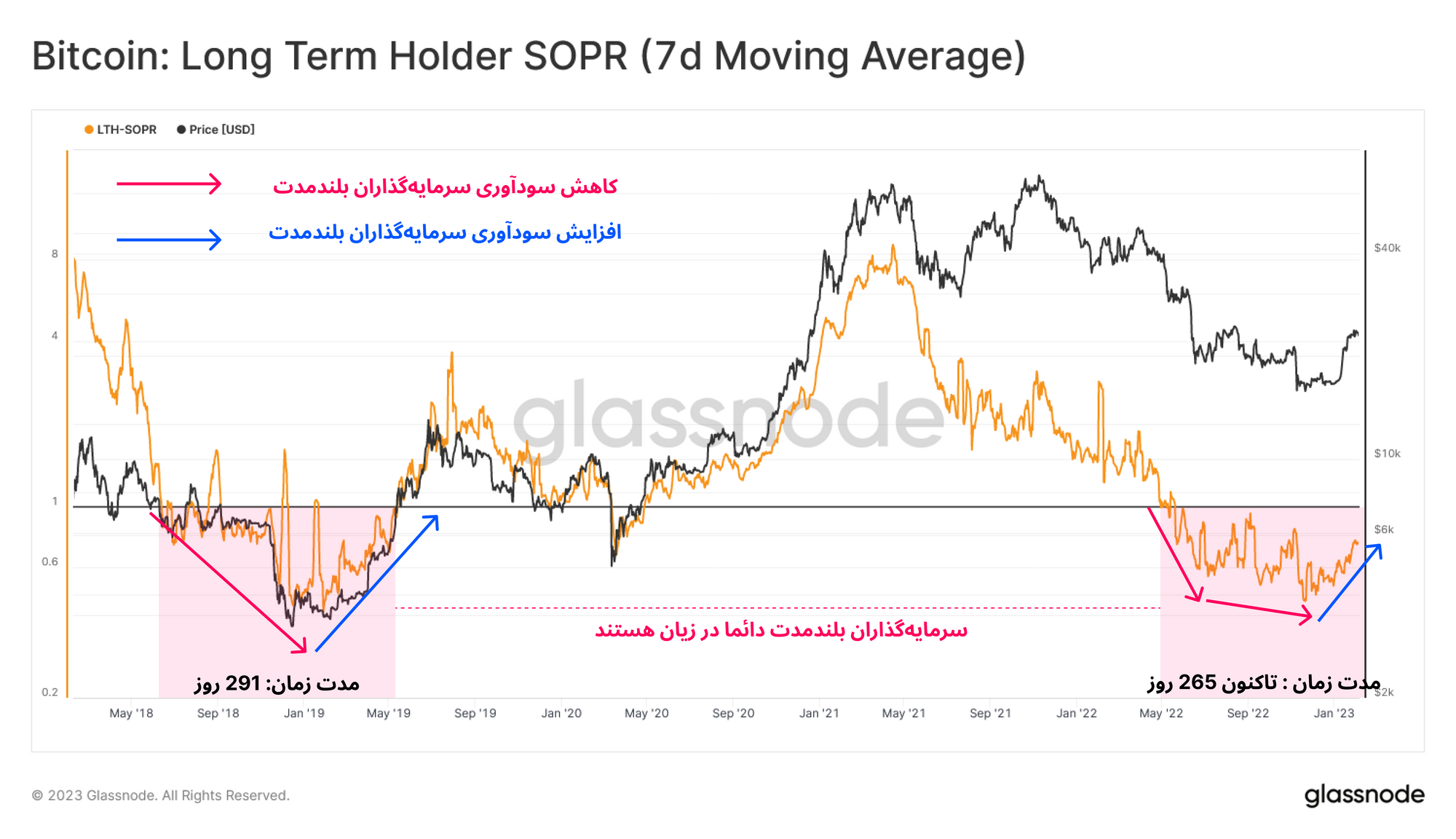 · مقادیر بالاتر در این معیار، به این معناست که سرمایهگذاران بلندمدت بیتکوینهای بیشتری خرج میکنند.