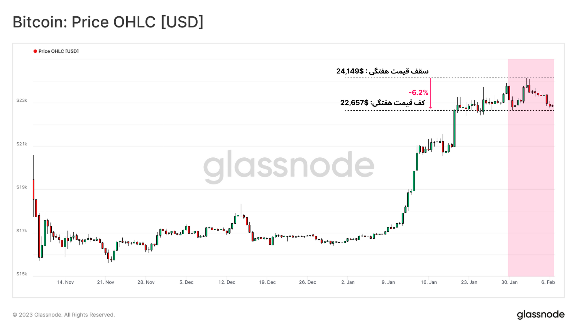 · برای مشاهده معیارهای on-chain، به استودیو گلسنود مراجعه کنید.