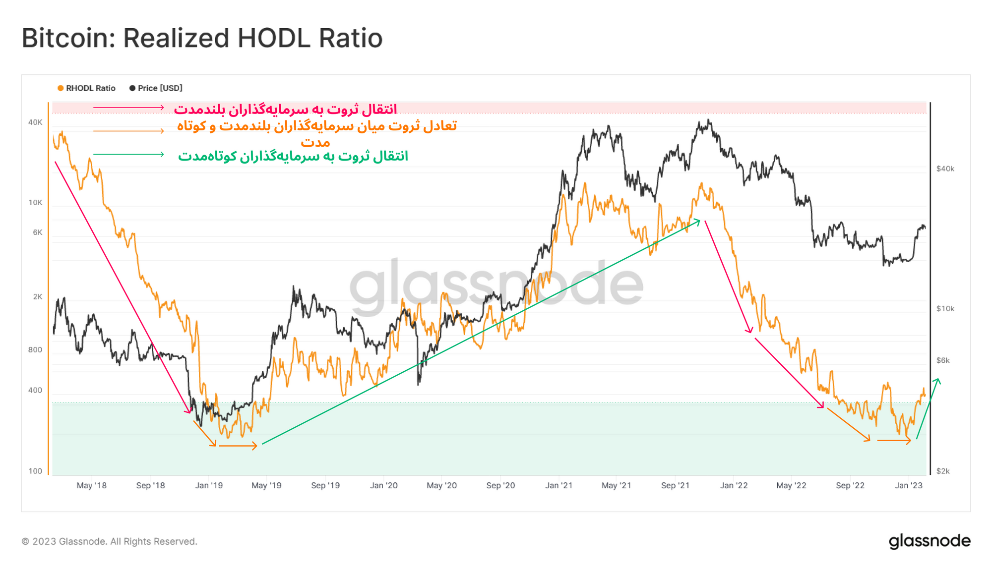 به نظر میرسد که بازار در حال عبور از این فاز نزولی باشد و احتمالا خود را برای ورود به چرخهای جدید آماده کند. اگر چرخههای نزولی قبل را به عنوان نقشهی راهنما در نظر بگیریم، مشاهده خواهیم کرد که بازار برای قدم گذاشتن به مرحلهای جدید، مسیر پر فراز نشیبی را پیش روی خود خواهد داشت (به عنوان مثال فاز نزولی ۲۰۱۵ و ۲۰۱۹). دوران گذر از فاز نزولی غالباً در بطن روندی کلان، همراه با حرکات مقطعی پرنوسان در هر دو جهت بازار شکل گرفته است.