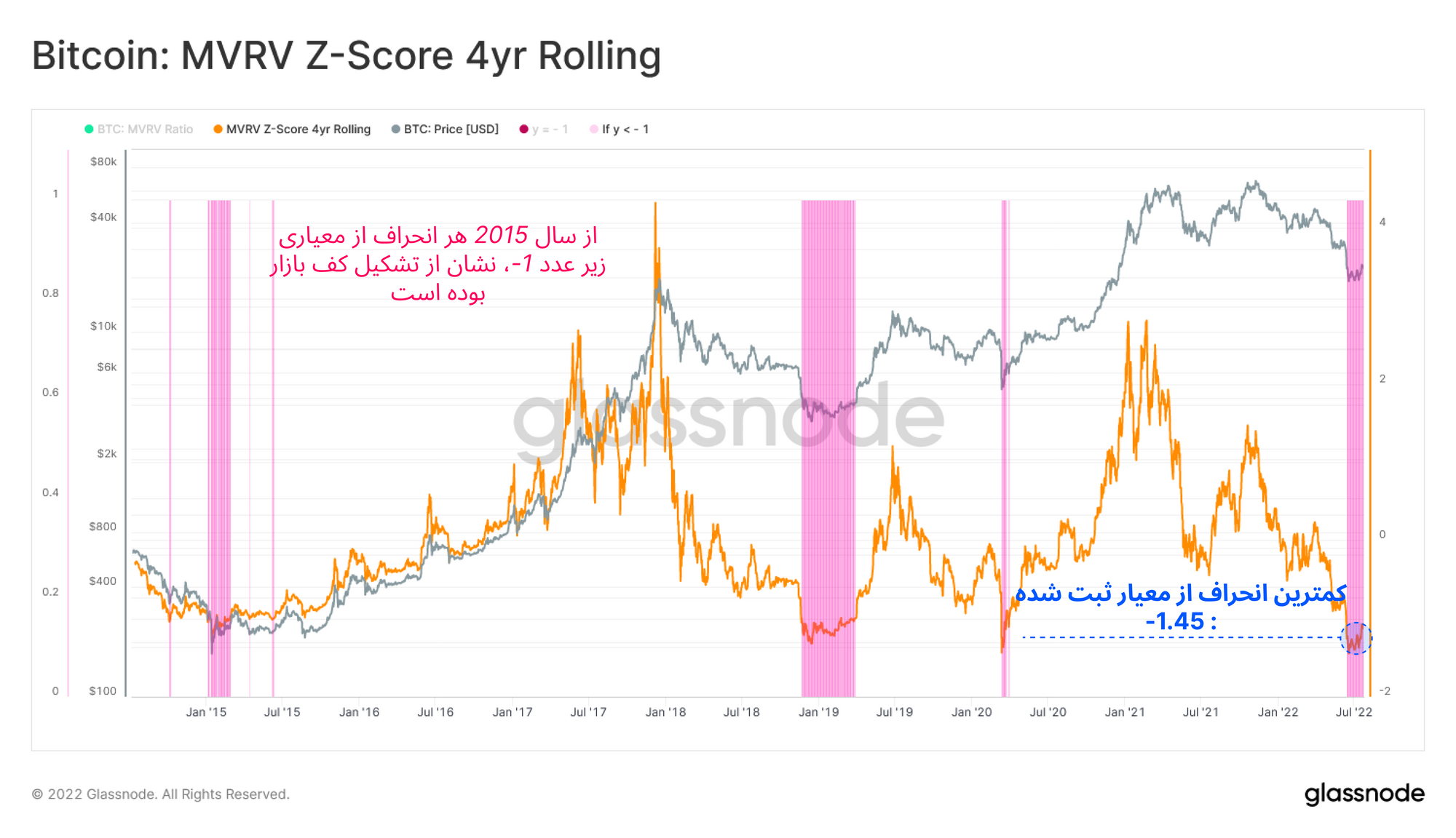 · زمانی که قیمت در ماه ژوئن افت شدیدی را تجربه کرد، این معیار در میانگین چهارساله خود به پایینترین نقطه رسید. به عبارتی این حالت به معناست که بازار تا کنون چنین انحرافی را از معیار قیمت خرید سرمایهگذاران در چهار سال اخیر تجربه نکرده است که همین نکته شرایط را برای رالی صعودی اخیر فراهم کرد.