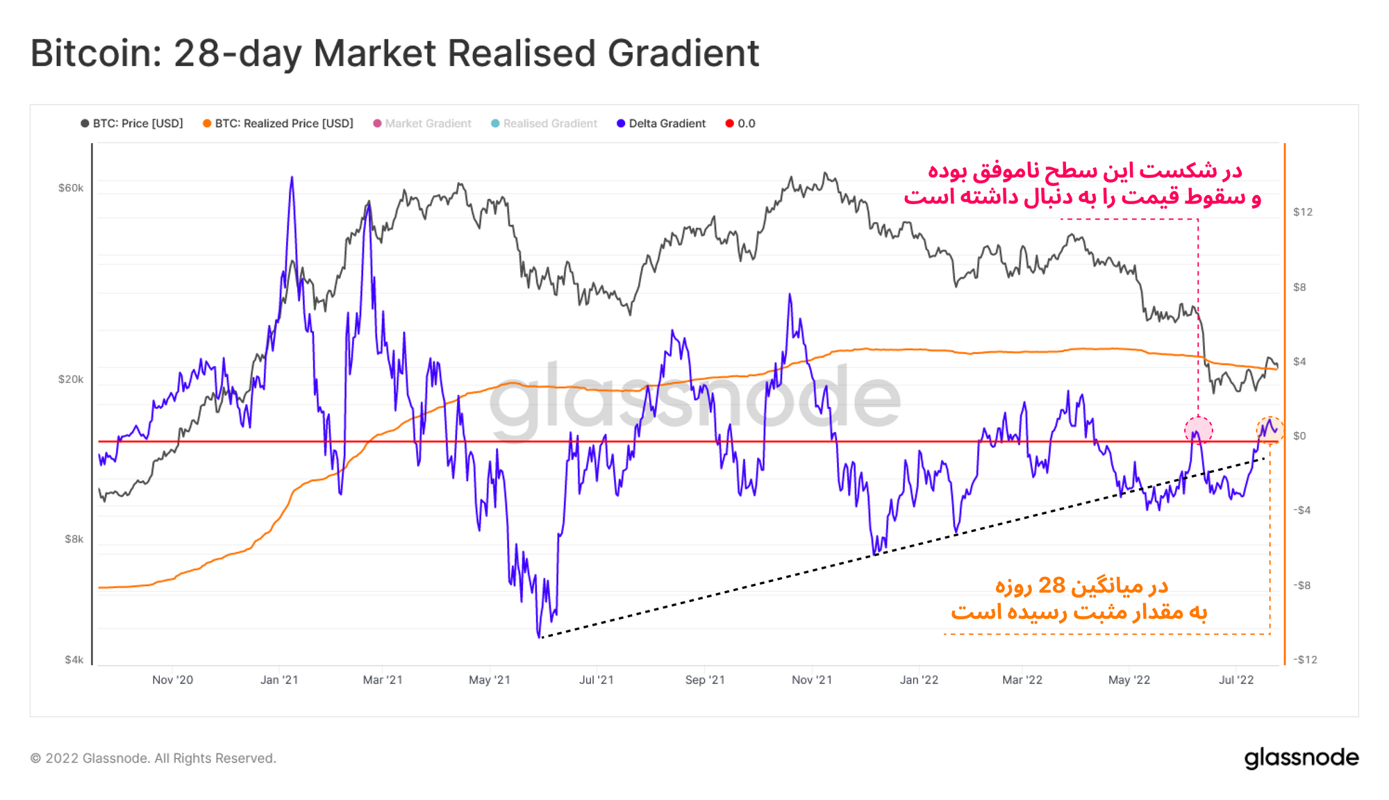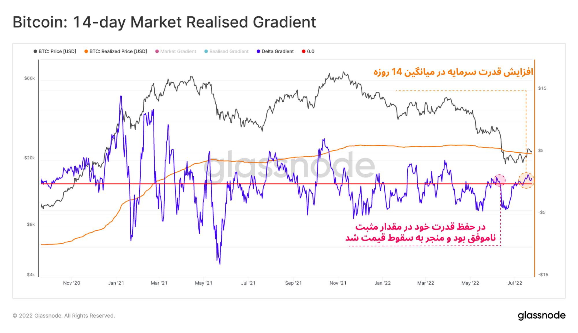 · این معیار زمانی که عددی مثبت را نشان دهد، به این معناست که قیمت با شدت بیشتری نسبت بهRealized price در بازار گاوی تغییر کرده و سرمایه بیشتری به بازار وارد میشود.