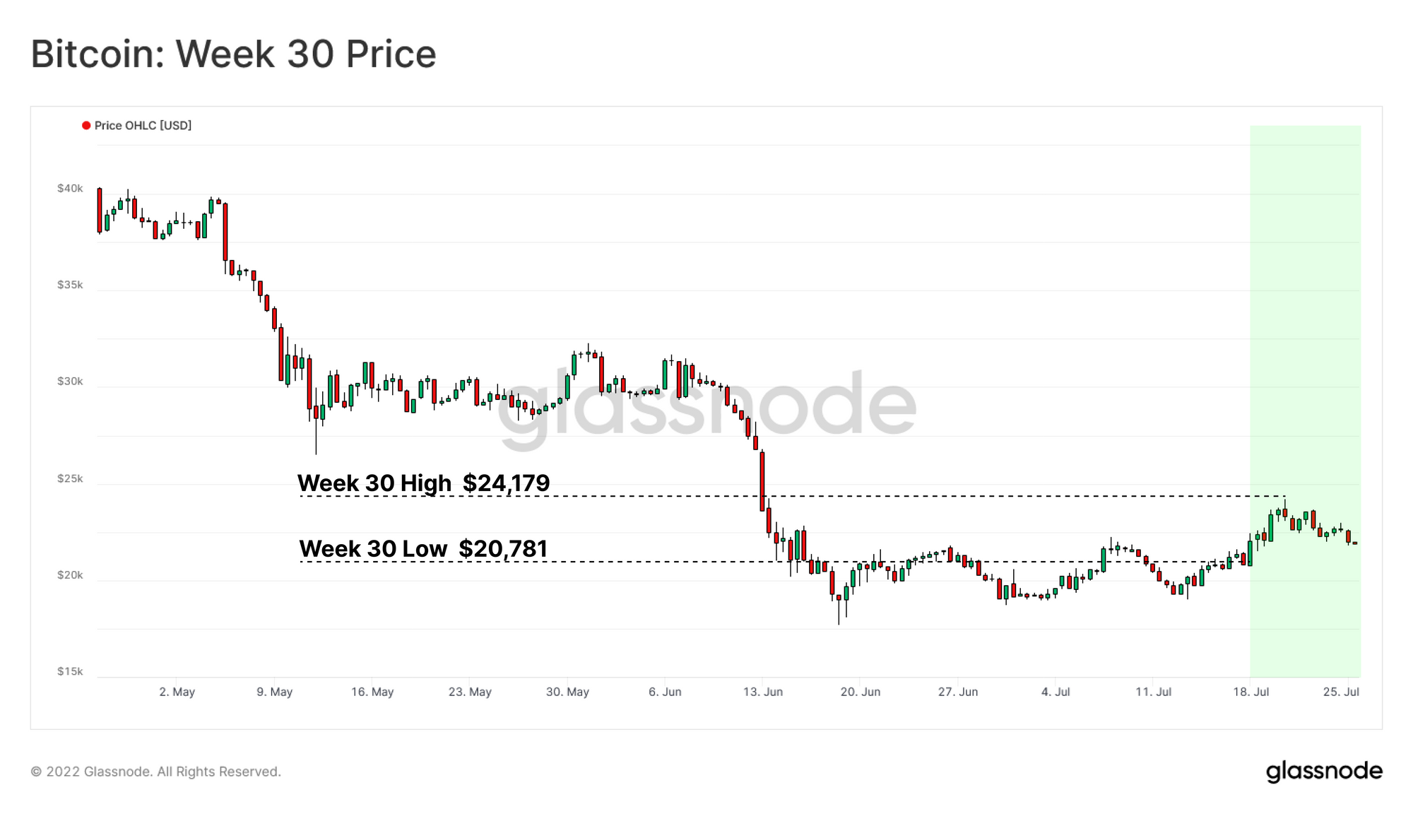 بیتکوین طی یک ماه اخیر در محدودهای خنثی قرار داشته و بلاخره در یک رالی صعودی مختصر از قیمت ۲۰.۷۸۱ هزار دلار شروع به حرکت کرد و با افزایش ۹ درصدی، در اواخر هفته به ۲۴,۱۷۹ هزار دلار رسید.