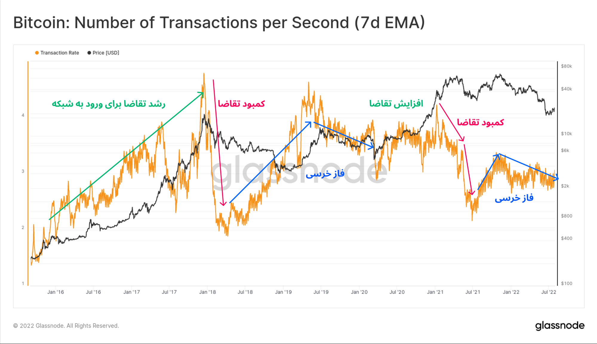 · برای مشاهده معیارهای on-chain، به استودیو گلسنود مراجعه کنید.