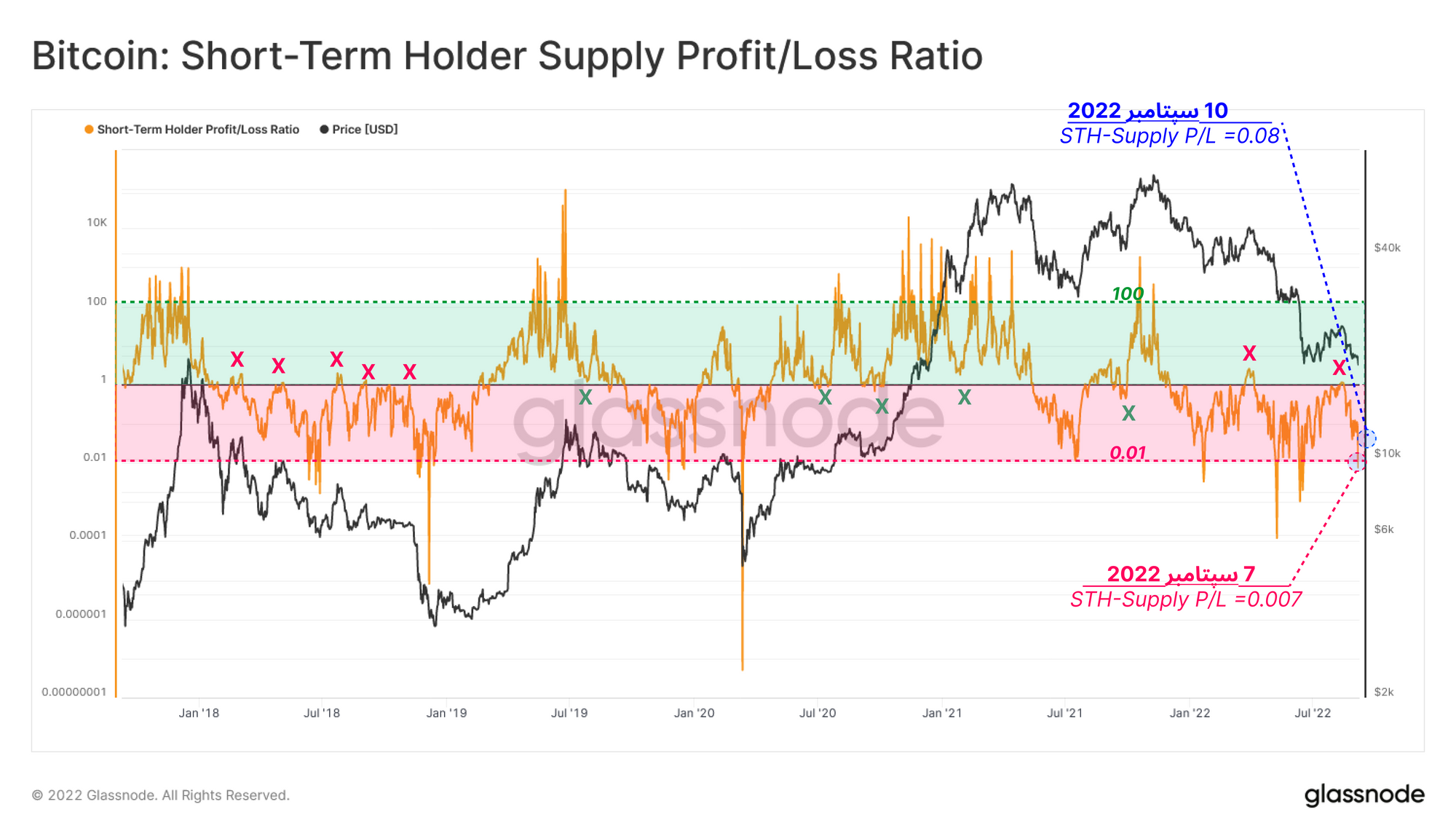 🟥 این معیار اگر مقداری کمتر از عدد ۱ را نشان دهد به این معناست که در فاز خرسی، سرمایهگذاران کوتاهمدت عمدتاً در ضرر هستند و هرچه این مقدار بیشتر کاهش داشته باشد، احتمال تسلیم همگانی و سپس بازگشت قدرتمند روند خواهد بود.
