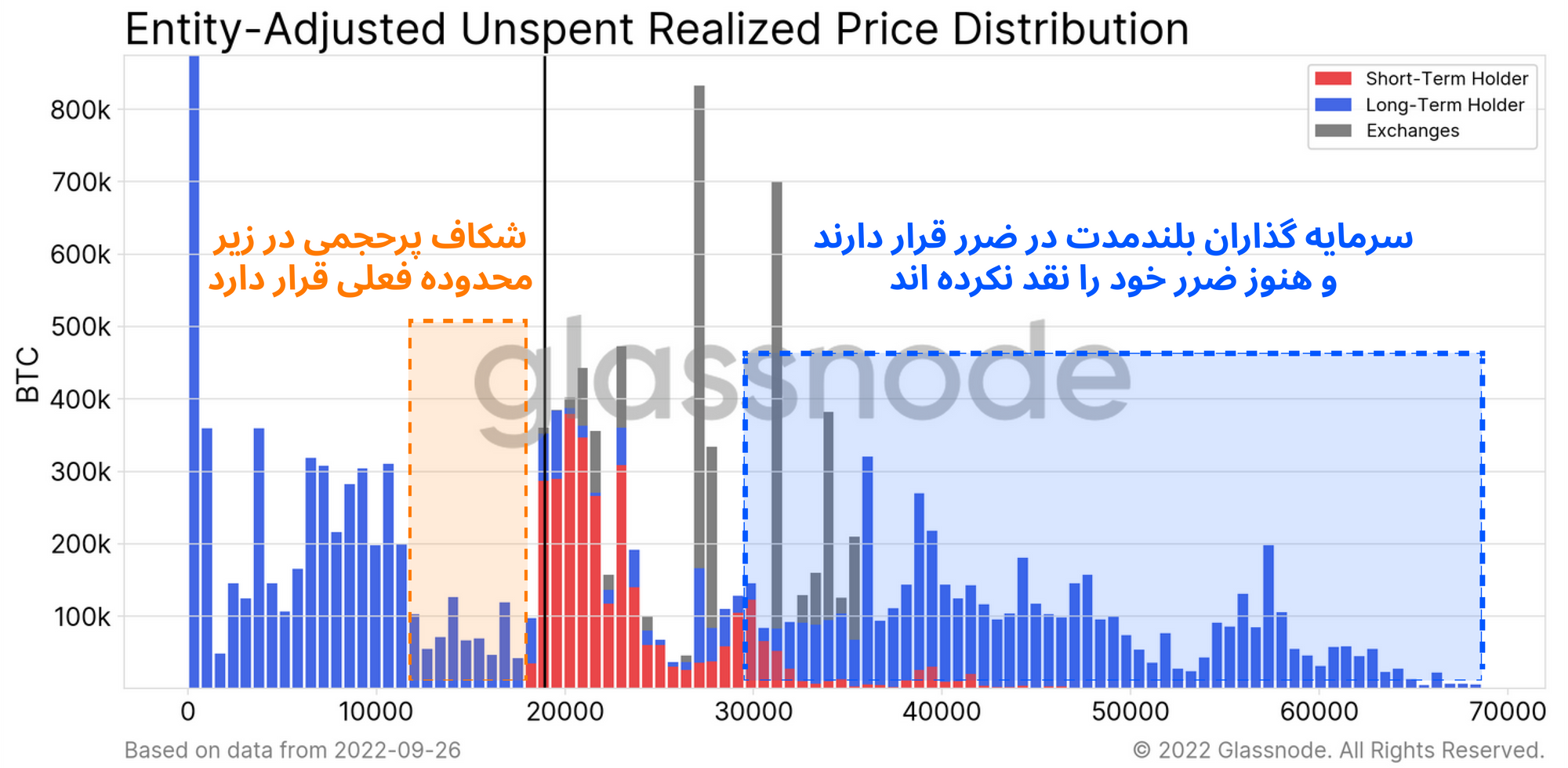 بر اساس دو نمودار بالا، هم اکنون سرمایهگذاران بلندمدت به ناحیه تعادل بازار که معمولا در اواخر فاز خرسی رخ داده است، نزدیک میشوند. تنها ریسک باقیمانده این است که سد محکمی که سرمایهگذاران کوتاهمدت تشکیل دادهاند، شکسته شود و دوباره برای ایجاد کف قیمتی ، نیاز به شکلگیری ناحیه متعادل دیگری باشد.