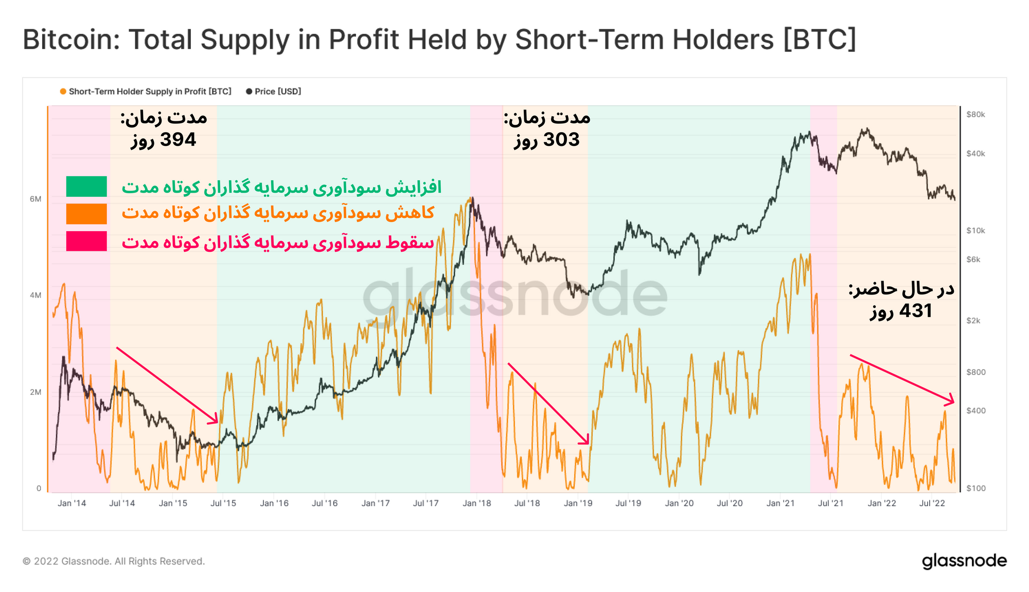 به نظر میرسد که سرمایهگذاران بلندمدت چندان تحتتأثیر حرکات قیمتی سال ۲۰۲۲ قرار نگرفتهاند. همچنین قیمت خرید آنها و هولد کردن بیتکوینها بسیار امیدبخش است. از طرف دیگر جابهجایی بیتکوینها اغلب از طرف سرمایهگذاران کوتاهمدت و حوالی قیمتهای فعلی شکل میگیرد. بنابراین، در بخش بعدی صرفاً سرمایهگذاران کوتاهمدت را بررسی خواهیم کرد.