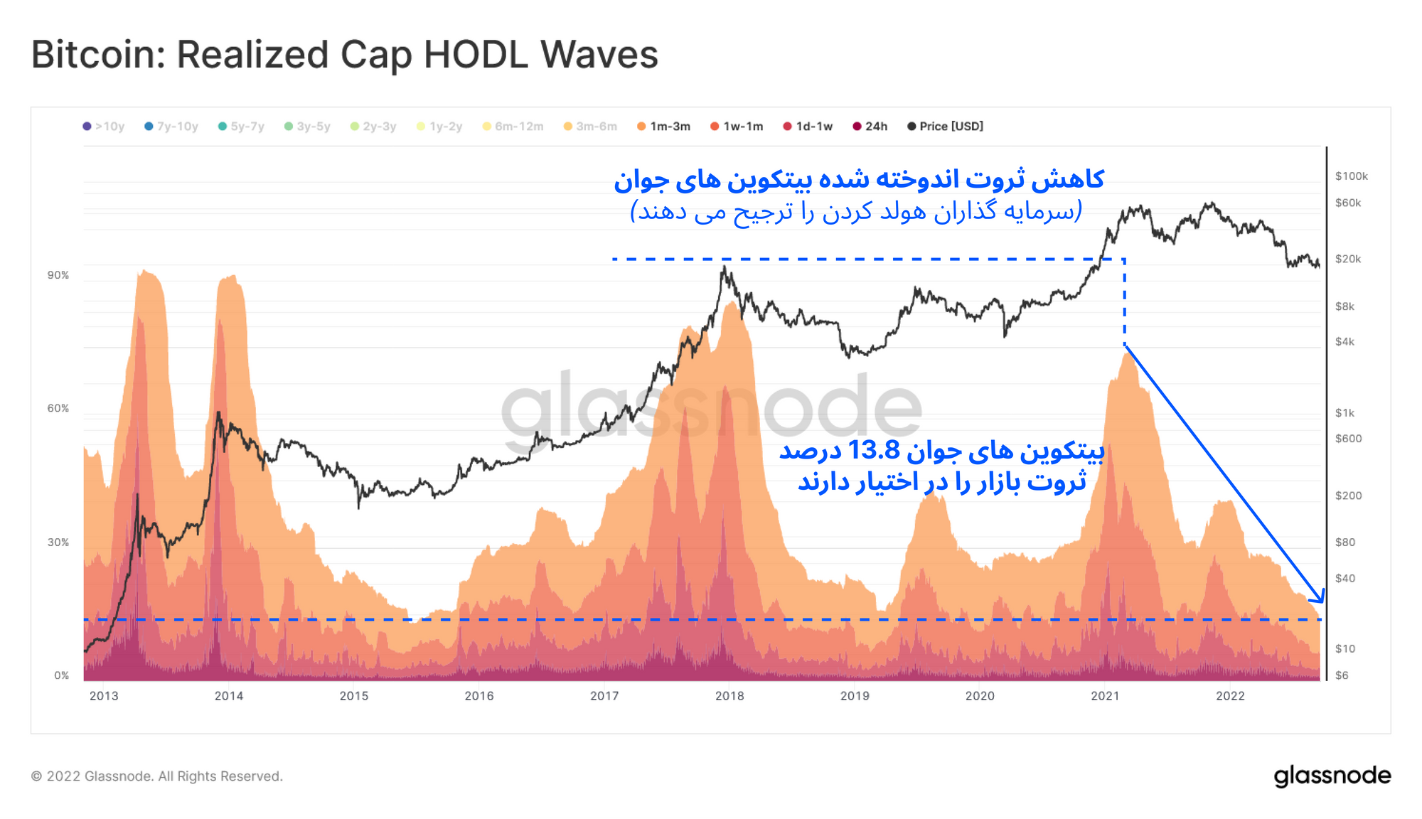 در حال حاضر میزان ثروتی که در بیتکوینهای بالغ اندوخته شده، به دلیل عدم تمایل سرمایهگذاران بلندمدت به خرج کردن بیتکوینهای خود در شرایط فعلی جهان، در ATH خود قرار دارد. بنابراین تمام فعالیت شبکه از سوی بیتکوینهایی جوانی است که دائما به صورت کوتاهمدت در حال دست به دست شدن هستند. با کاهش بیتکوینهای فعال و بسیار جوان در شبکه، بازار هنگام تغییر جهت ممکن است با کمبود عرضه مواجه شود.