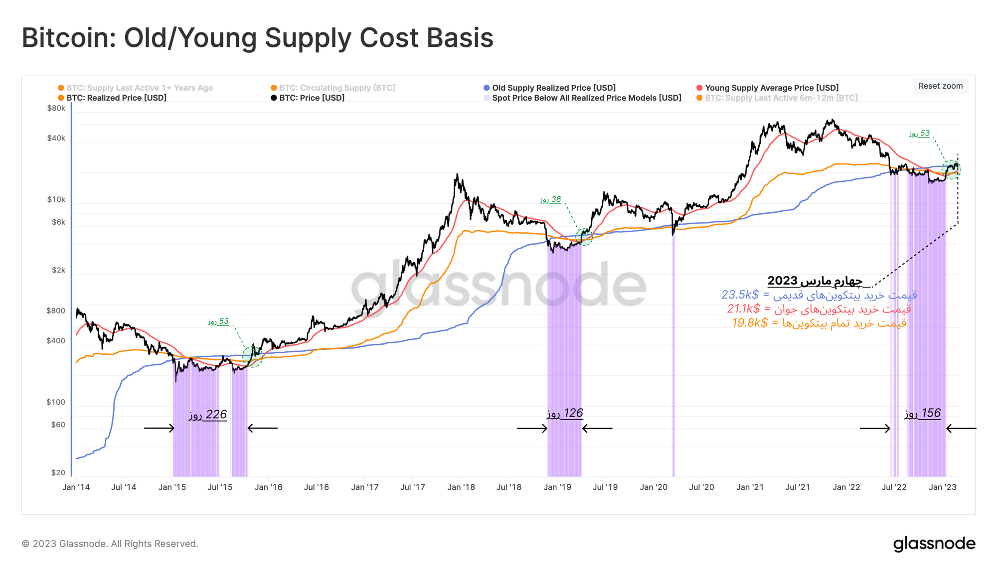 🔵میانگین قیمت خرید بیتکوینهای پیر؛ به عبارتی بیتکوینهایی که حداقل به مدت شش ماه خرج نشده اند، ۲۳.۵ هزار دلار است.