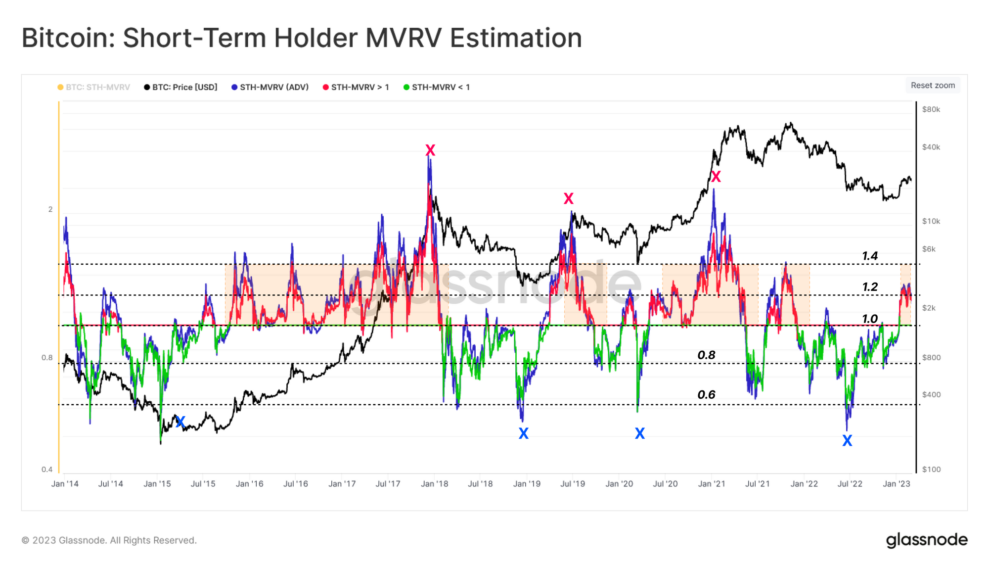 همانطور که مشاهده میکنید، پس از برخورد این معیار با سطح ۱.۲، قیمت از سطح ۲۳.۸ عقبنشینی کرد. اگر اصلاح قیمت تا سطح ۱۹.۳ هزار دلار ادامه داشته باشد، این معیار به سطح ۱ خواهد رسید و سرمایهگذاران کوتاهمدت را به نقطه سربهسر معاملات خود خواهد رساند.