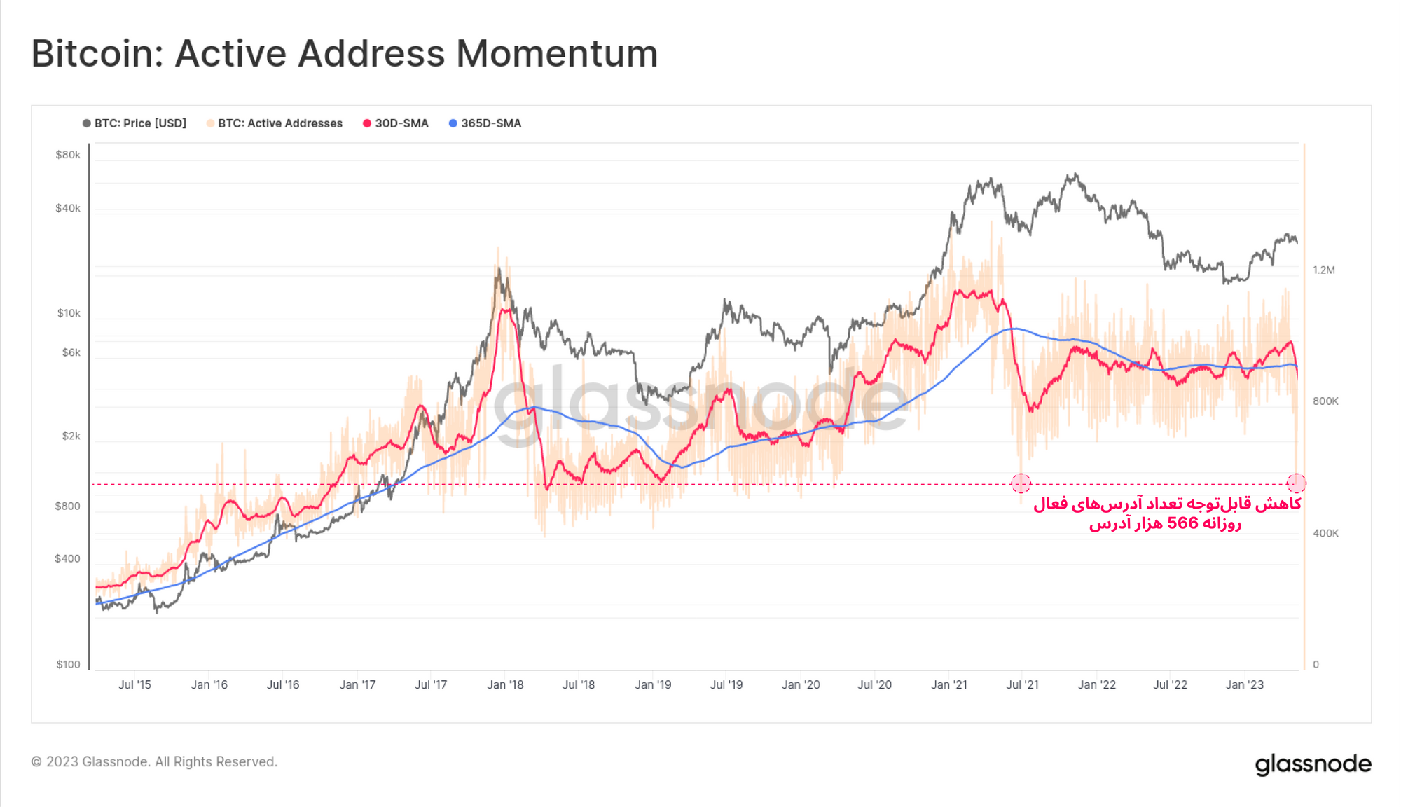 · برای مشاهده معیارهای on-chain، به استودیو گلسنود مراجعه کنید.