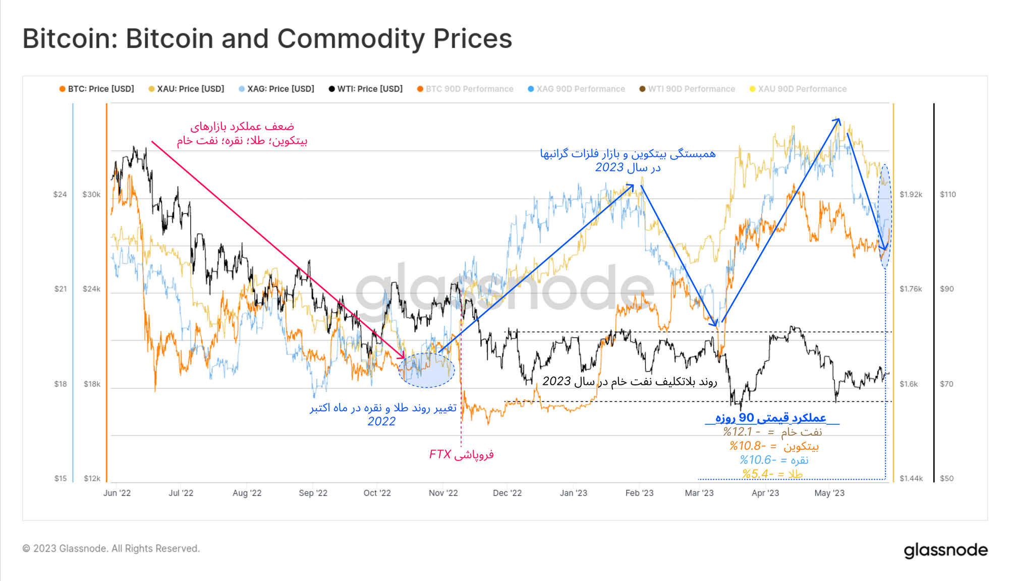 اگرچه بازار بیتکوین همگام با بازار کالاهای اساسی در حال اصلاح قیمت است، اما در سال ۲۰۲۳ همچنان عملکرد بهتری نسبت به داراییهای دیگر نشان داده است. سرمایهگذاران بیتکوین اکنون از دشوارترین مراحل فاز خرسی عبور کرده و به تعادلی دست یافتهاند که ممکن است بازار را به هر جهتی سوق دهد.