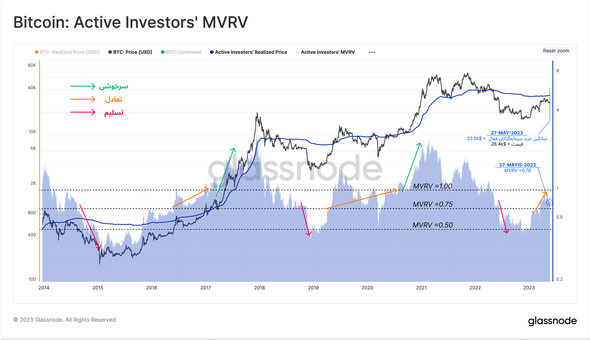 · برای مشاهده معیارهای on-chain، به استودیو گلسنود مراجعه کنید.