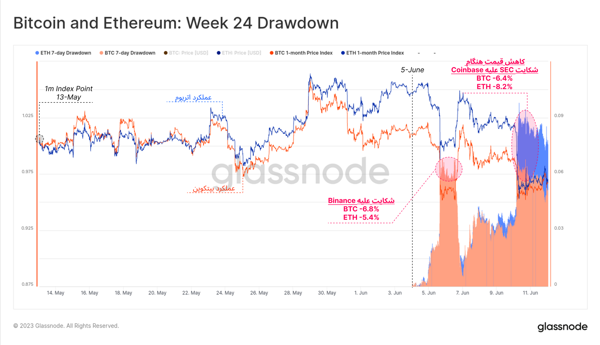 با انتشار این اخبار در روز پنجم ژوئن، بازار اتریوم ۵.۴٪ و بیتکوین ۶.۸٪ افت قیمت داشت. هر دو بازار هنگام انتشار اخبار مرتبط با Coinbase در روز بعد به ثبات قیمت رسیدند. اما تا اواخر هفته گذشته اتریوم با کاهش قیمت ۸.۲٪ ضعف بیشتری را تجربه کرد و بیتکوین ۶.۸٪ ریزش داشت.