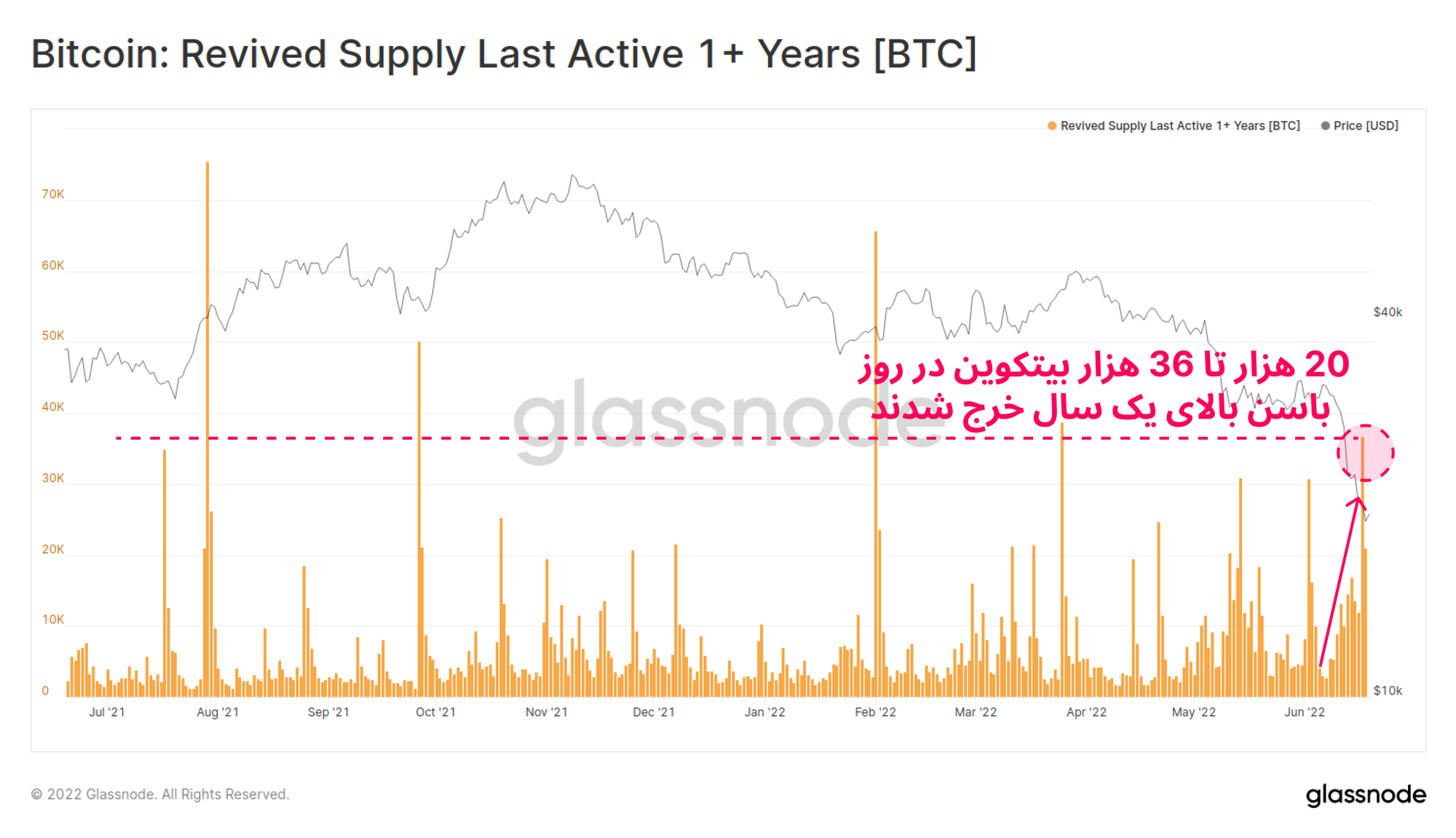 نمودار زیر خرج شدن بیتکوینهایی را نشان میدهد که به مدت یکسال غیرفعال بودند و خرج نشدهاند.