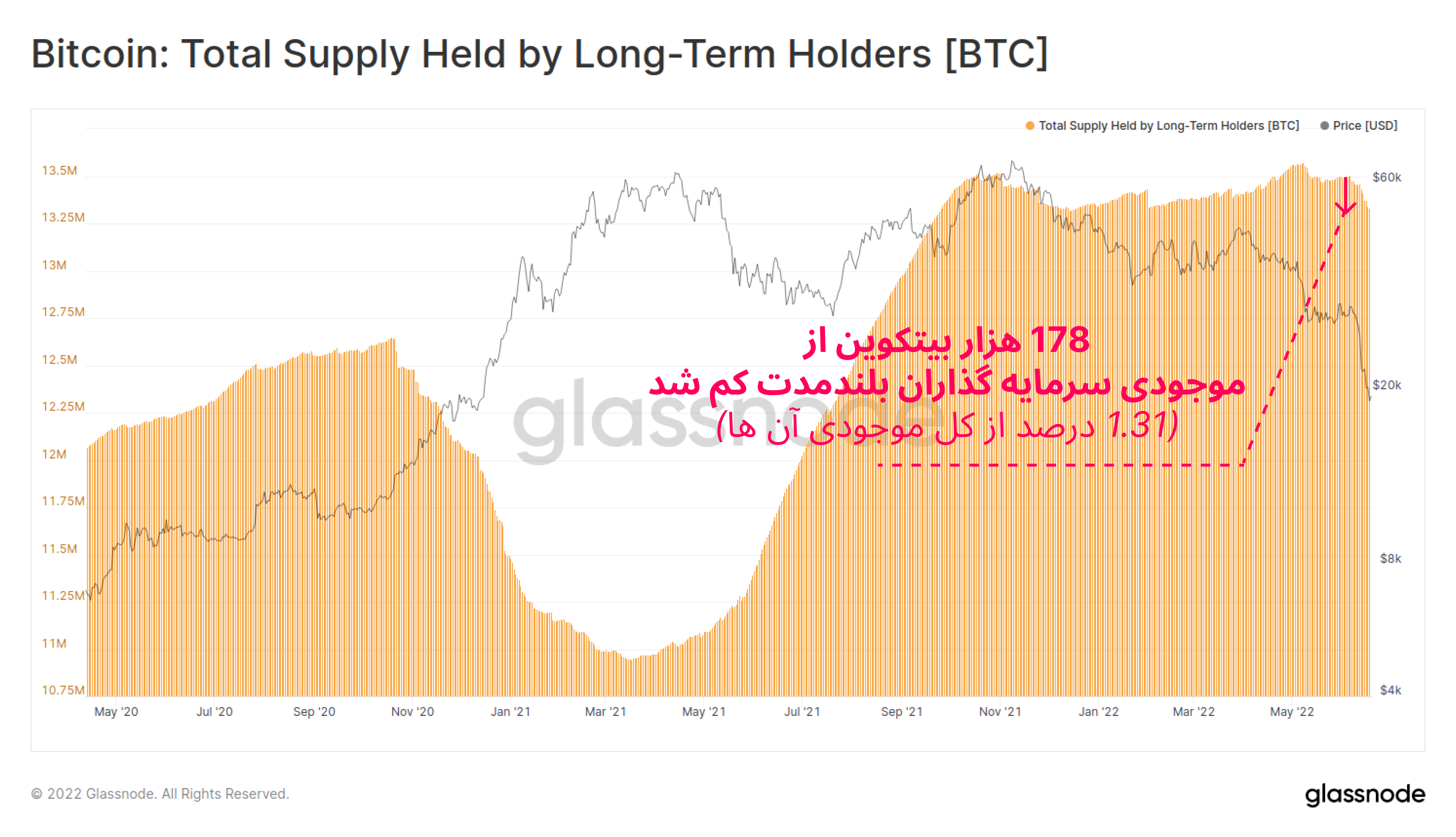 آتش بازار خرسی به تدریج دامنگیر سرمایهگذاران بلندمدت میشود. این سرمایهگذاران تحت فشار بیشتری قرار گرفتند و بسیاری از آنها مجبور شدند که هر چه سریعتر بیتکوینهای خود را بفروشند. این سرمایهگذاران در هفته اخیر ۱۷۸ هزار بیتکوین فروختند که معادل ۱.۳۱ درصد تمام بیتکوینهای این گروه است.
