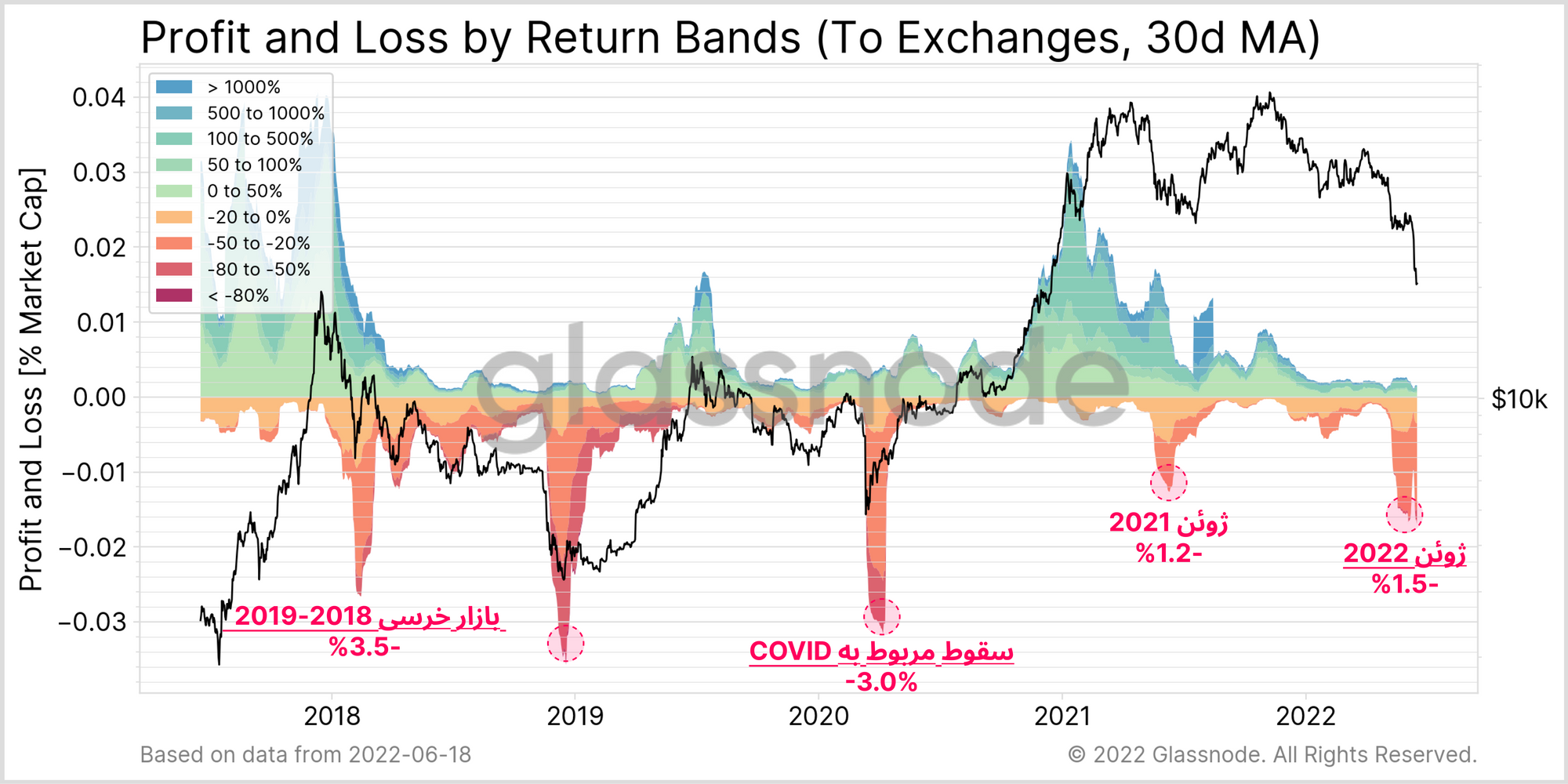 چنین میزان ضرری که پس از انتقال به صرافیها محقق شده، از میزان ضرر ماه می تا جولای ۲۰۲۱ بیشتر است، اما به حد و اندازه ضرر بازار خرسی ۲۰۱۸-۲۰۱۹؛و سقوط مربوط به کووید نیست.