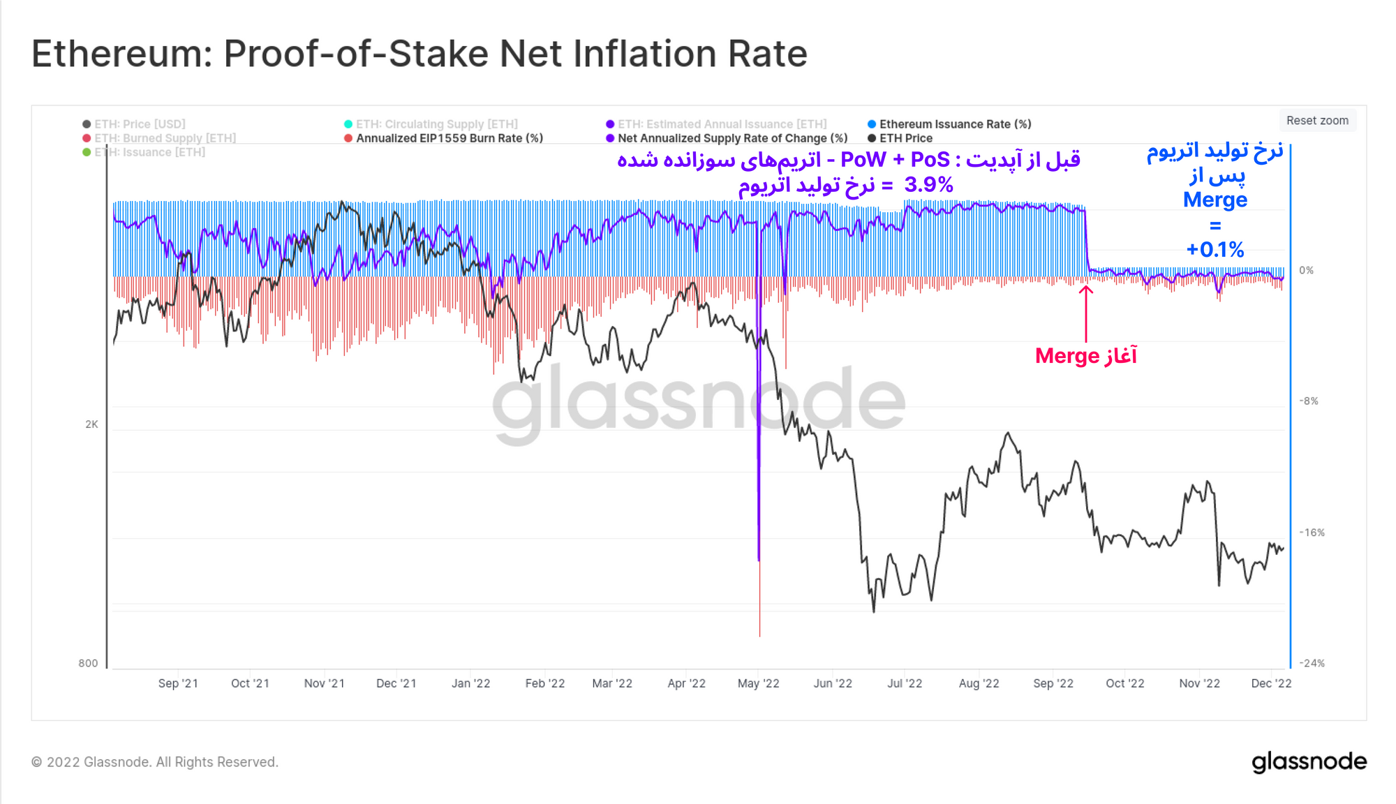 با تغییر مکانیزم اتریوم از PoW به PoS، سیاستهای پولی اتریوم نیز دچار تغییراتی شده و نرخ تولید اتریوم و تورم آن بسیار کاهش یافته است.