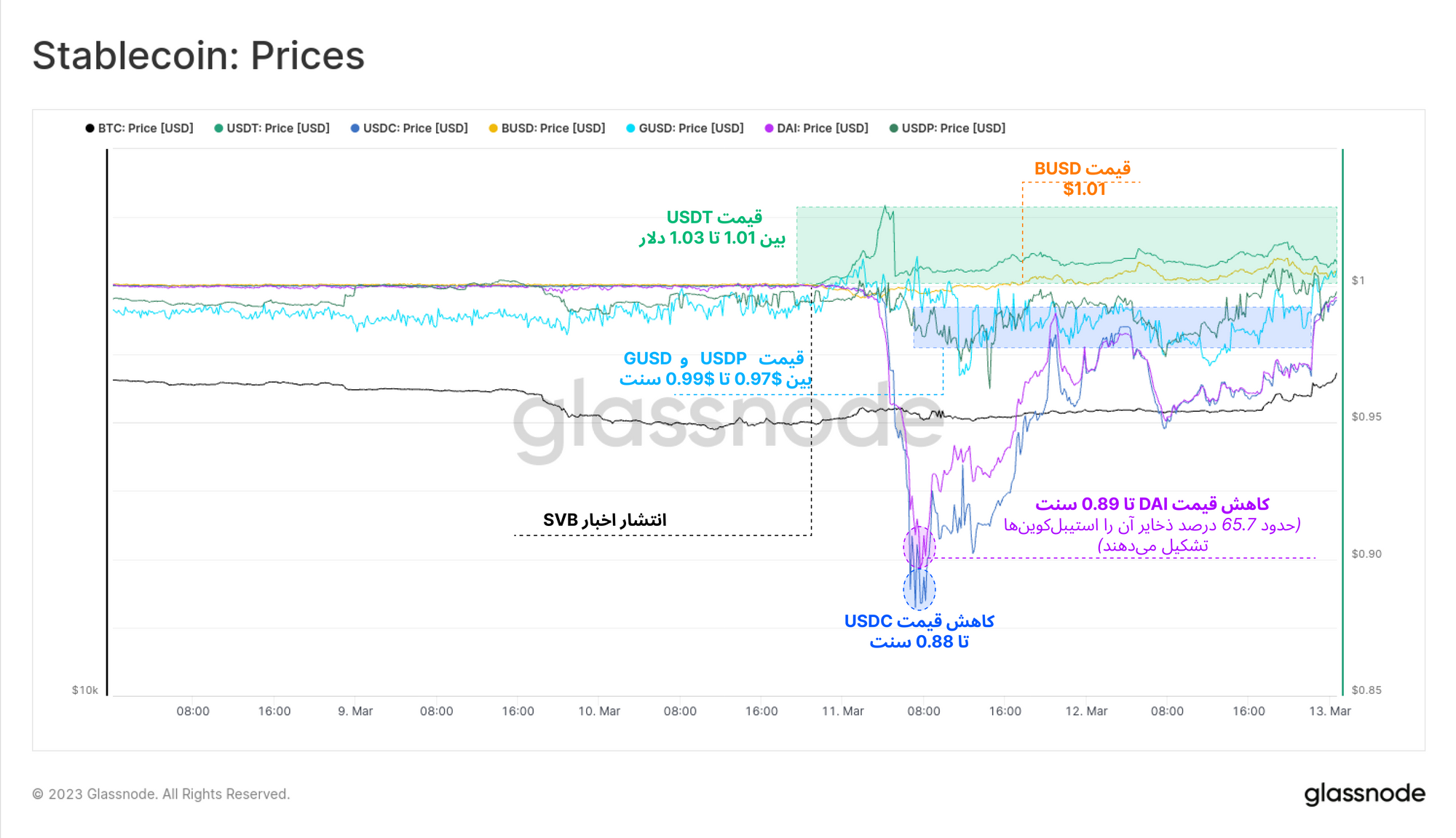 فروپاشی سه موسسه بانکی در خلال نظارتهای روزافزون نهادهای قانونی آمریکا، هفتهای بسیار جنجالی را برای بازار ارزهای دیجیتال رقم زد. قبل ازاینکه اخبار مبتنی برامکان برداشت سپردههای بانکی منتشر شود، در روزهای تعطیل بازار مالی، به دلیل هیجانات منفی بازار چندین استیبلکوین از ارزش یک دلاری خود پایینتر معامله شدند.