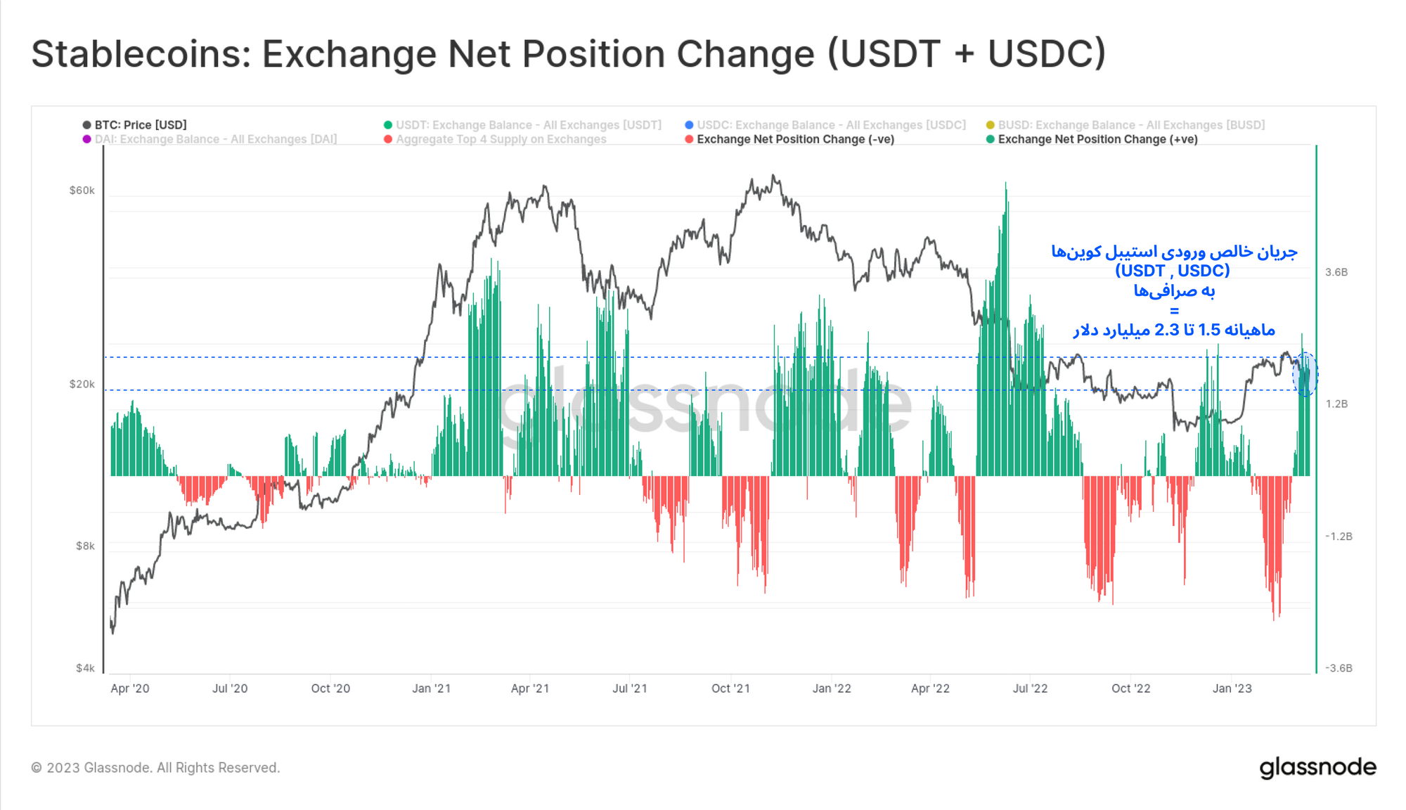 · برای مشاهده معیارهای on-chain، به استودیو گلسنود مراجعه کنید.